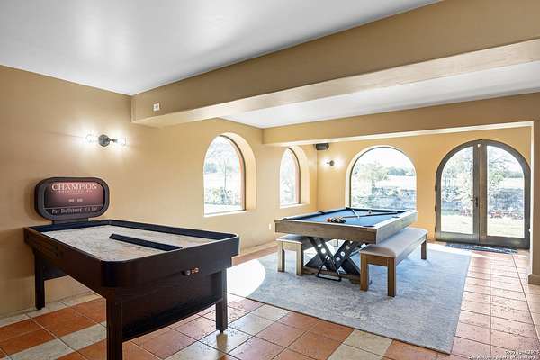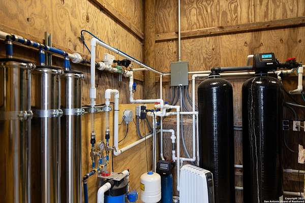 Luxury Defined: An Oasis of Comfort and Tranquility in the Heart of the Texas Hill Country Nestled amidst the pristine beauty of Pipe Creek, Texas, 4198 Bear Springs Road presents an extraordinary estate where luxury and serenity intertwine. This sprawling compound encompasses an opulent 9,842 square foot main home, a 1,850 square foot guest home, a 1,375 square foot garage apartment, and a one-bedroom guest casita, all harmoniously situated on a approximately 114-acres. The property also features a 2,400 square foot barn with 575 square feet of enclosed workshop. A covered 1,000 square foot pole barn serves as additional equipment storage and houses a technologically advanced Reverse Osmosis and water softener system with 1,000 gallons of treated water available to the improvements. Indulge in the tranquility of a private live spring-fed creek and a picturesque pond, while open pastures provide ample space for exploration and recreation. The grandeur of nature unfolds before your eyes, creating a serene sanctuary where you can escape the hustle and bustle of everyday life and relax in your private oasis. Within the main home, prepare to be awestruck by a 1,200 square foot exercise haven complete with a rejuvenating swim spa and sauna. Savor the ambiance of a climate-controlled wine room capable of holding over 1,000 bottles, the perfect setting for hosting sophisticated gatherings. Let the entertainment flow freely in the grand theater room, game room, and entertainment room, while ample storage ensures a clutter-free abode. Exceptional craftsmanship is evident throughout the home, from its granite countertops to the artisan brick inlaid arched entry ceiling. The three 42-seer geothermal air handling units maintain a perfect indoor climate year-round, ensuring optimal comfort and energy efficiency. Whether you entertain family, friends, or esteemed guests, this estate offers an unparalleled retreat where everyone can find their own sanctuary. The stocked pond teeming with Florida strain bass, blue-gill perch, and minnows invites avid anglers and kiddo's alike to cast their lines. Conveniently located near Boerne, Bandera, Hondo, and under 50 minutes from the San Antonio International Airport, this rare property offers the perfect balance of seclusion and accessibility. Discover the epitome of luxury and experience the tranquility that only 4198 Bear Springs Road can provide.