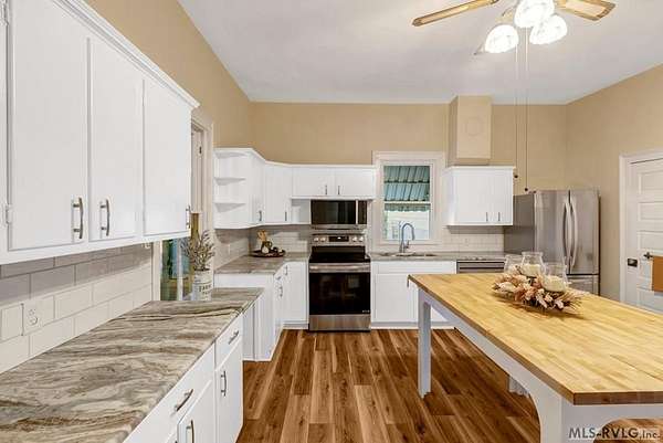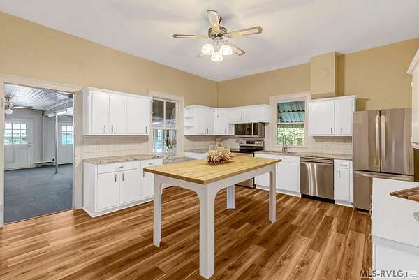 This beautifully updated 5-bedroom, 2.5-bath home offers the perfect blend of historic charm and modern comfort. Set on 2 acres in a desirable country setting just minutes from town, this spacious home features original hardwood floors, and new luxury laminate flooring. The kitchen features granite counter tops, new stainless steel appliances, a large walk-in pantry and a butcher block table/island. There's also a formal dining room. The primary bedroom is located downstairs along with a large living room and an additional bonus/office space. Enjoy peace of mind with new vinyl windows and thoughtful updates throughout. Relax on the inviting front porch, surrounded by mature trees and open yard space. Plenty of room for outdoor enjoyment, gardening, or future expansion. A unique combination of space, style, and location--this home is move-in ready and waiting for its next chapter!