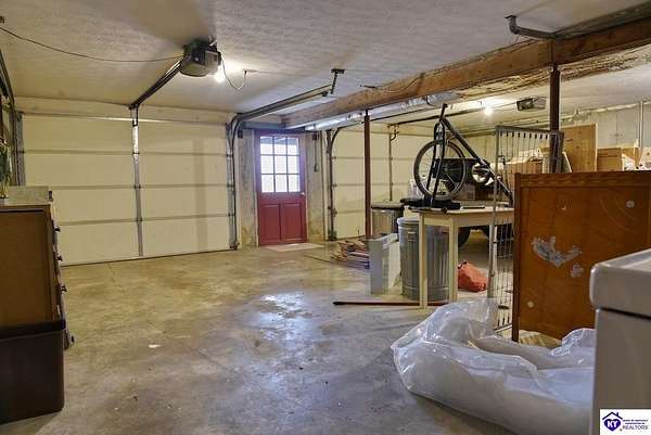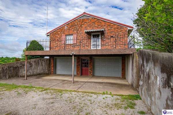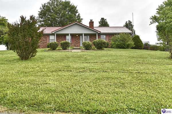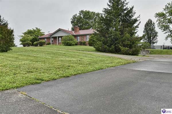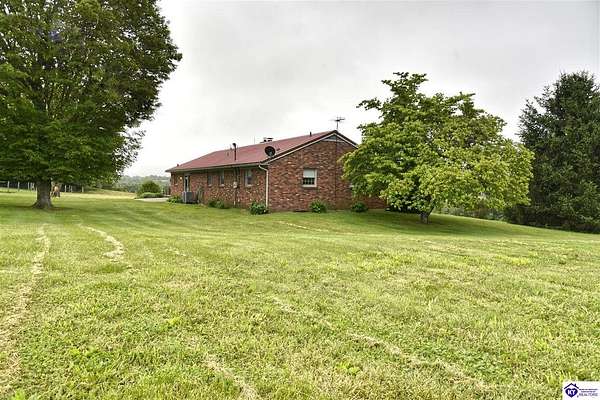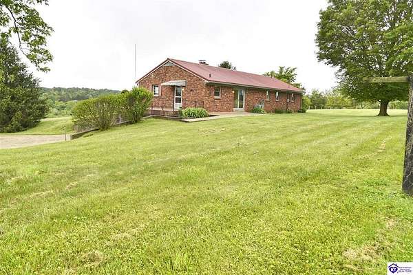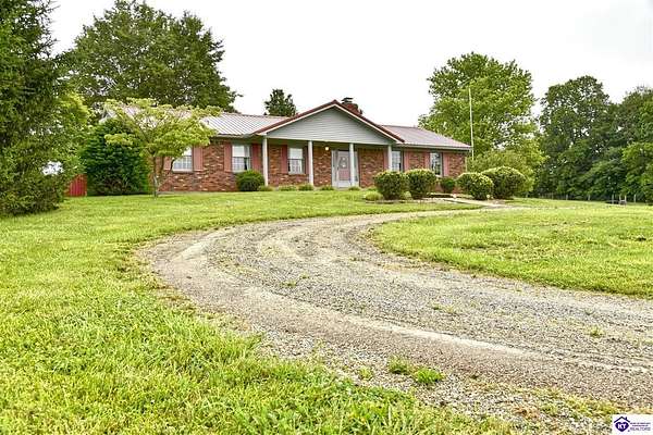 Country Gem for sale! 3-bedroom, 3-bath, 1,820 sq. ft. brick home with a walkout basement, situated on approximately 105.87 acres zoned A-1. The property includes a survey. The home includes three bedrooms plus a bonus room that can serve as a fourth bedroom. There are three full bathrooms, one featuring a jetted tub and a separate makeup vanity. The downstairs bedroom has new carpet, and the downstairs bathroom has new linoleum. A chair lift provides added accessibility. The main living spaces offer comfort and convenience. The family room has built-in cabinets, while the kitchen is equipped with a built-in oven, cooktop, microwave, outside-vented range hood, and a built-in desk. The downstairs kitchen includes canning shelves and a vintage Kelvinator cast iron sink with a drain board. A utility room with a wash tub sink and built-in cabinets adds extra function. The home is well equipped with an Aprilaire filter on the heating and air system, a whole house fan, central vacuum system, and a gas log insert with a built-in fan switch. The basement is also equipped with a flue for a wood stove. Double patio doors add light and easy access to the outdoors. Recent updates include fresh interior paint and new wood flooring in the utility room and kitchen. The home also has a metal roof installed in 2010, a two-car garage, and a concrete driveway. The farm includes 3 outbuildings, with room for equipment, storage, and an area ready for raising chickens. The fields are mostly fenced, and mostly clear with some wooded areas. Currently there is an easement for the construction of a new road behind the house and buildings, including a temporary easement connecting to Springfield Road that will expire after construction completes. This road frontage has the potential for future value. Contact listing agent for details. This property combines comfort and practical features with the flexibility of multiple tracts, making it an excellent opportunity for those looking for acreage, a hobby farm, or a country home. Contact us today for a showing!