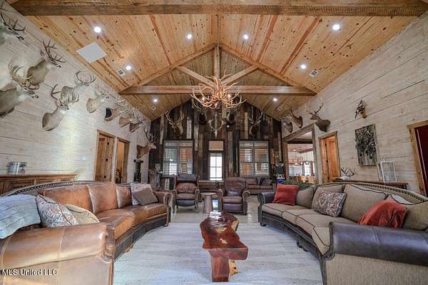 At the heart of the property sits an impressive 7,000+- square foot luxury hunting lodge in Mississippi, featuring 6 bedrooms and 6.5 bathrooms. Designed for comfort and entertaining, the lodge easily accommodates family, friends, or corporate groups, making it ideal for a corporate hunting retreat or private sporting estate.