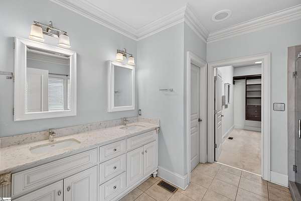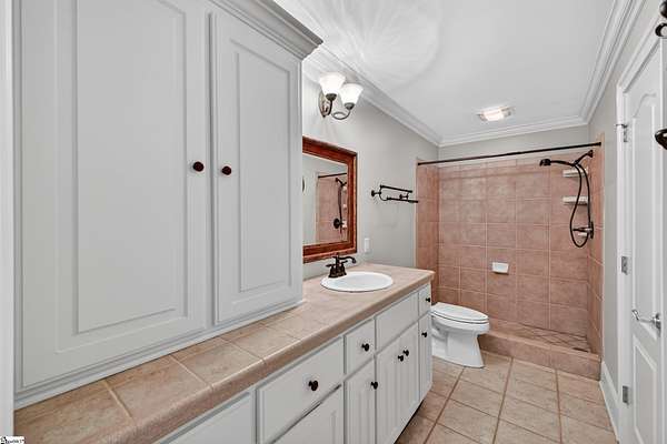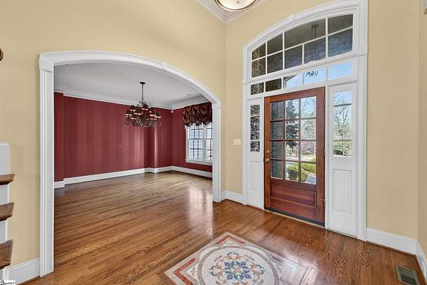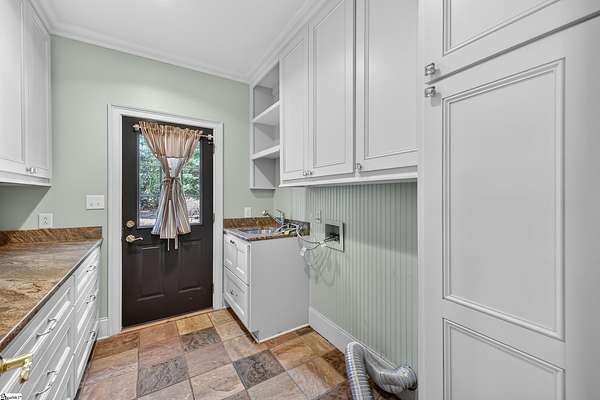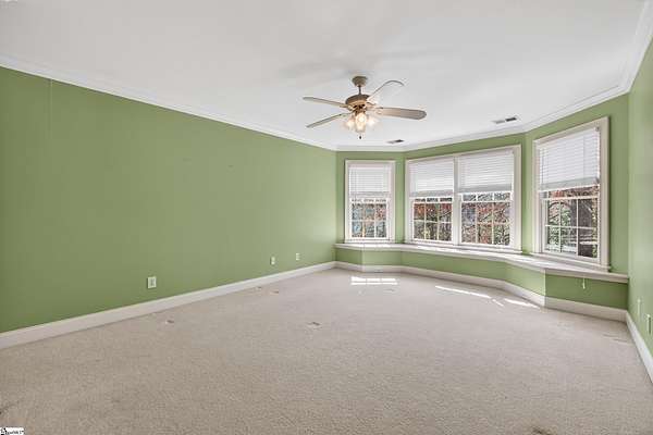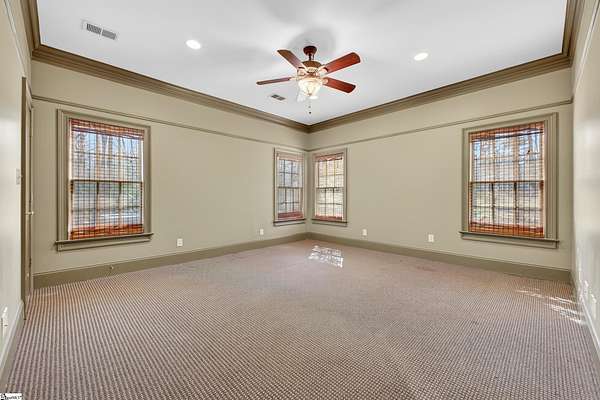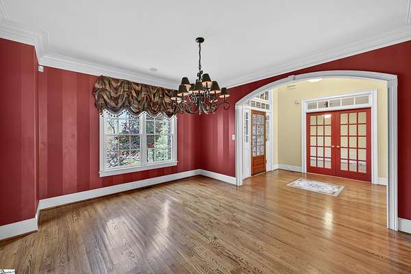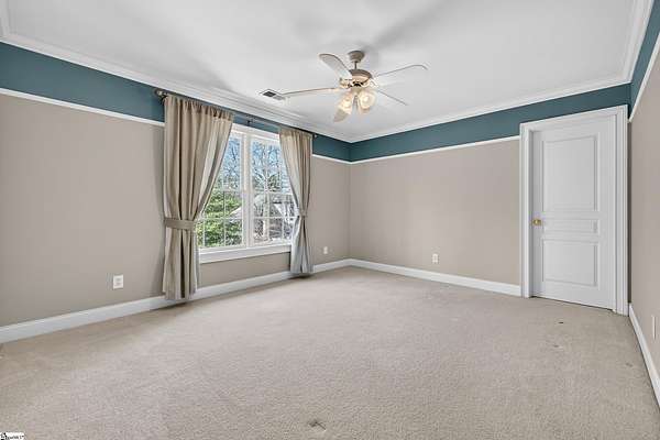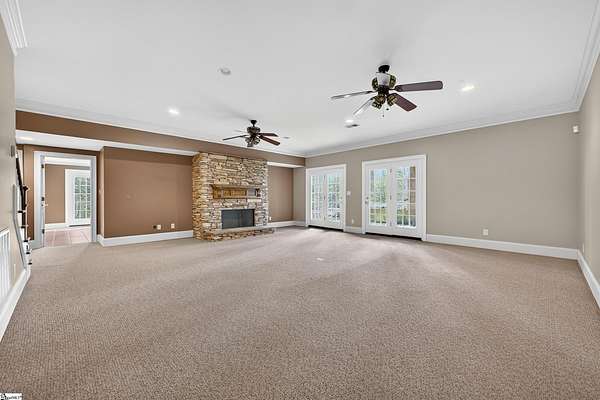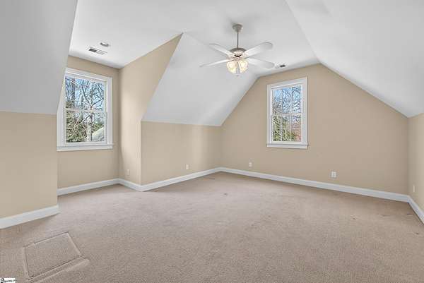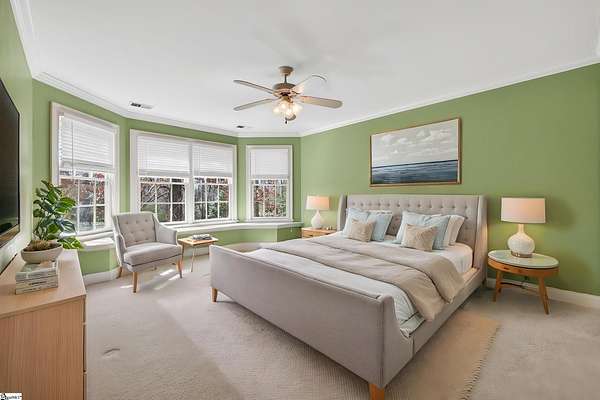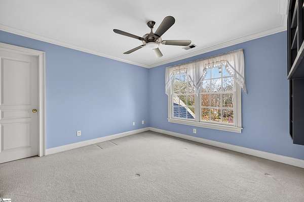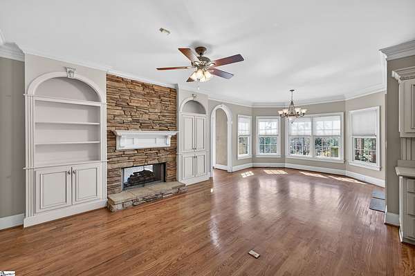 Welcome to your gracious, resort-style retreat on 2.7 acres of mature trees, tucked on a quiet cul-de-sac with easy access to Pelham Rd and Woodruff, and 10 minutes to GSP. This over 5,000 sq ft, 5-bedroom, 4.5-bath custom home, invites you with a welcoming foyer, and elegant formal dining and living spaces. The heart of the home features a sunlit central family room with high ceilings, patio doors opening to a large deck overlooking the beautiful backyard, and a stone fireplace that also opens to a keeping room, breakfast room and the chef’s kitchen—complete with a 6-burner Thermador cooktop, double ovens, and a large island. Step outdoors to a beautiful covered porch with a fireplace, built-in grill, and retractable blinds, perfect for year-round gatherings. The primary suite on the main offers serene views of the backyard and a spa-like ensuite with double vanity, walk-in shower, separate tub, and a spacious walk-in closet. Upstairs, three bedrooms, a Jack-and-Jill bath, ensuite bath and a playroom provide flexible spaces for family life. The expansive basement includes a bedroom and bath, a large office, and a generous gathering room with a stone fireplace, plus walk-out access to the yard. Offering perfect space for guests or an in-law suite. Practical comforts abound: laundry with sink, central vac, recently installed HVACs (12/2024), and both an attached 2-car garage and a detached 2-car garage with extra storage, plus a circular drive for effortless arrivals. The grounds have been lovingly cared for by a master gardener, creating inviting outdoor rooms and year-round beauty. This home blends space, warmth, and sophisticated outdoor living—make it yours with a private showing today.