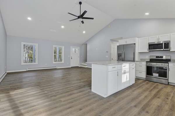 Just completed in time for the holidays, this new construction 3 BR 2BA contemporary ranch sits on 2.75 peaceful acres tucked away at the end of private way in Gorham. The 8 x 52 farmers porch overlooking the woods is the perfect spot for morning coffee watching wildlife and listening to the birds and the peepers. It is hard to believe in just minutes you can be at Hannaford, Randalls Apple Orchard, Sebago Lake or Downtown Gorham Village with its amazing restaurants, shops and hiking and biking trails yet when you are home it's a tranquil refuge from today's hectic pace. A paved driveway leads you to a 28 x 28 garage with high ceilings, thoughtfully designed for storage and to accommodate today's larger vehicles. Walking inside, the welcoming open concept kitchen with granite countertops and stainless appliances plus the vaulted living room provide the perfect backdrop for family dinners, entertaining, game nights or just a cozy night of Netflix or a book. The primary suite offers a private bath with a double vanity sink, also on the main floor are two other bedrooms, a full bath plus the laundry making single floor living a cinch. However, there is a wonderful finished room on the second floor which is also stubbed for another bath making even more living space for an office, home gym, media room, playroom, the possibilities are endless. In total, the home is 1904 sq feet above grade, with a daylight walk out basement offering up even more potential living area. 42 Brandons Way offers so much flexibility, character, charm and a true peaceful easy feeling of single floor living. Don't wait to set up a showing, you won't want to miss out on this one.