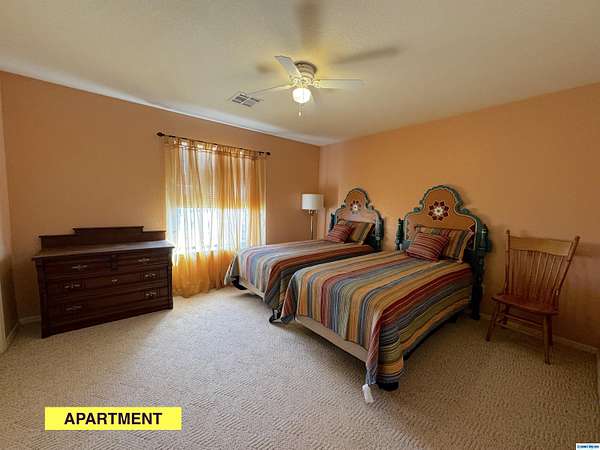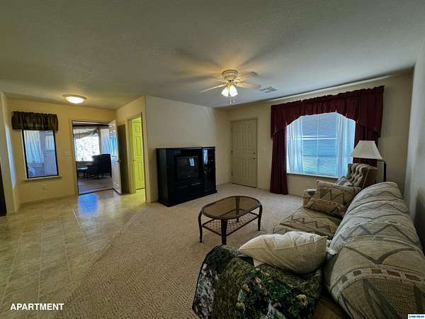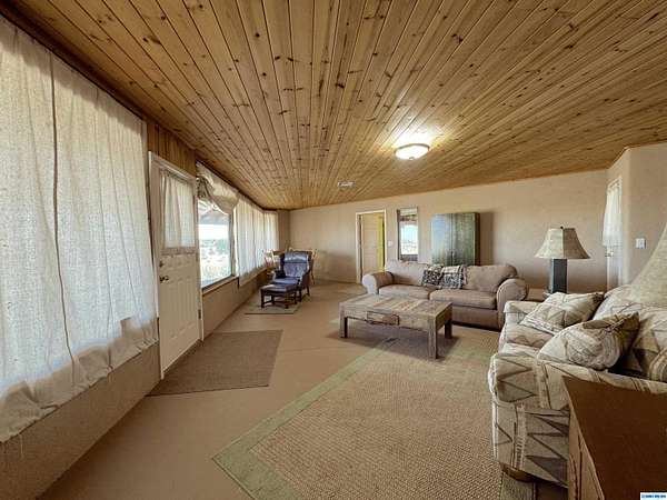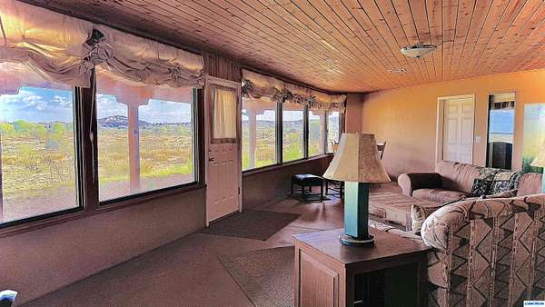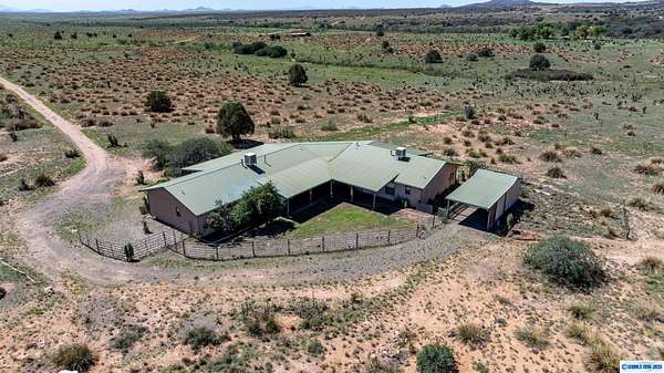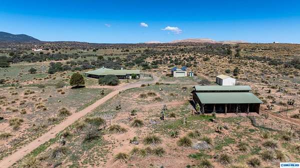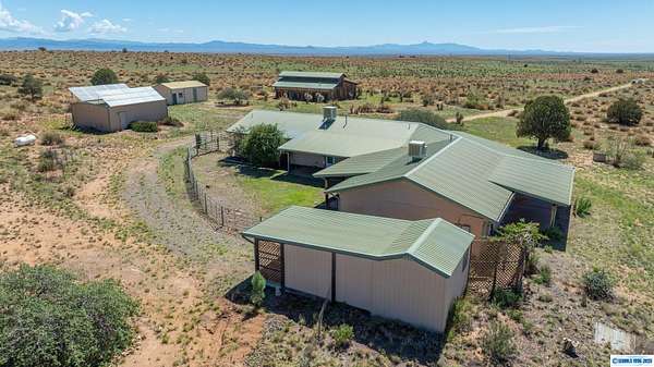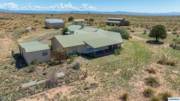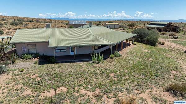 42-ACRE RANCHETTE. 3300+ Sq Ft home includes a private 2/1 spacious apartment. Secluded location only 15 minutes south of town.. Solar, 2-car detached garage, plus a separate tractor garage and a 2500 sq ft barn with tack room, pipe corral, and arena. Perimeter is fenced. The main house is 2/2 with an office. The main house and apartment are joined by a wonderful sunroom with miles of views from the wall of windows overlooking the property and beyond. Front of house is wrapped by a covered veranda and back of house has a smaller veranda. So many ways to enjoy the temperate weather and gentle seasons!