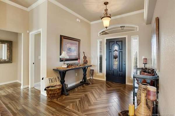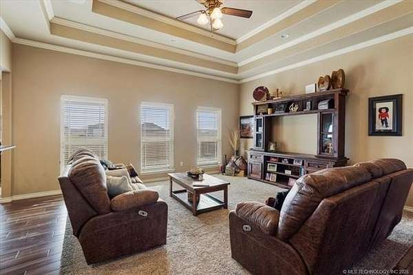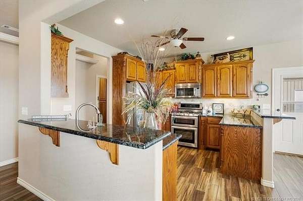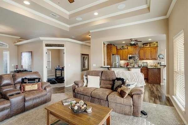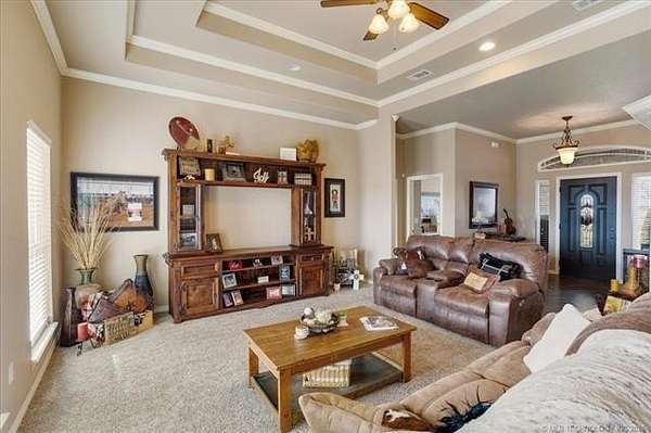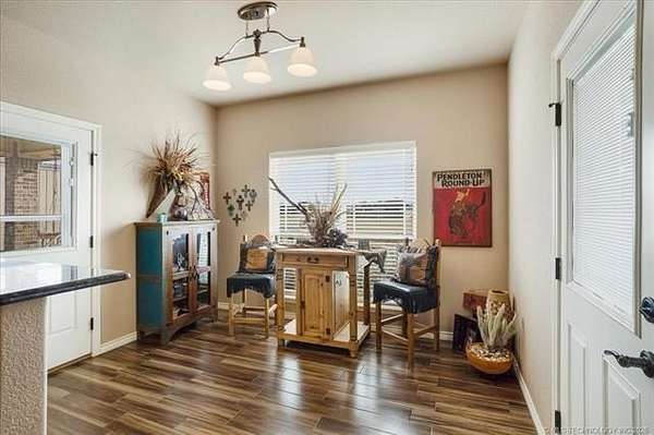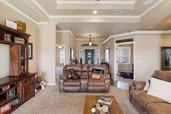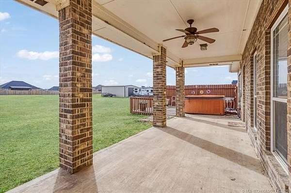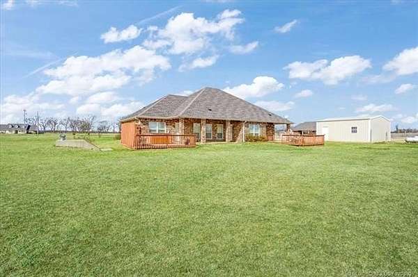 Luxury country living just minutes from Lake Durant and Choctaw Casino, this custom-built brick home on 2 acres offers high-end finishes, thoughtful design, and a peaceful rural setting with convenient access to town. This 4-bedroom, 2-bath home features cathedral ceilings, bullnose corners, and an elegant entry leading into an open-concept living and kitchen floorplan designed for entertaining. The kitchen showcases granite countertops, custom cabinetry, and abundant storage while opening seamlessly into the main living area. The private primary suite includes exterior deck access, his-and-her walk-in closets, double granite vanities, and spa-style tiled walk-in shower with multiple body spray jets. A tankless hot water system provides energy efficiency and continuous hot water. A double glass-door room off the main living area offers flexibility for a home office or formal dining space filled with natural light. The fourth bedroom includes a closet and can function as a guest room, exercise room, or bonus space. Two additional bedrooms are located on the opposite end of the home and each feature walk-in closets. Additional improvements include a two-car garage, covered front porch, covered back patio, landscaped yard, and a shop with concrete flooring and electric. The laundry room features built-in pantry cabinetry, granite folding counter space, hidden ironing board, and additional storage. Enjoy a quiet rural feel while being located less than one mile from Lake Durant with fishing, walking trails, disc golf, and park amenities, and only minutes from shopping, dining, and entertainment in Durant.