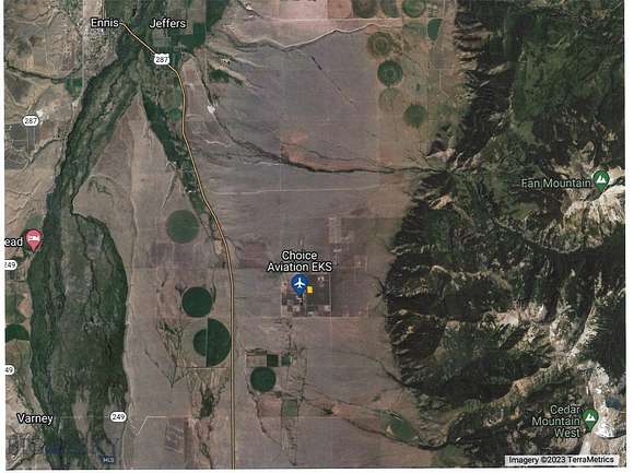 5.961-acres located on the east side of the Ennis - Big Sky Airport (FAA LID: EKS) with direct taxiway access onto the 7400' runway. The airport is located 6 miles south of Ennis MT and 30 miles to Big Sky via the private Jack Creek Road. The airport is part of the National Plan of Integrated Airport Systems and categorized as a general aviation airport. The Covenants for Shining Mountains Airpark categorize Lot 20-B2 as "Airport Commercial" which permit a hanger and / or residential or commercial use. The property offers outstanding views of the surrounding mountains and non-public access to the Lee Metcalf Wilderness area and National Forest Lands. The area is home to world class fishing, hunting, hiking, and winter recreation. Power and fiberoptic communications are to the lot. An unimproved grass / gravel taxiway is in place perfect for a tail dragger. Runway access is possible through the fence if the new owner chooses to install a gate and necessary turf or asphalt taxiway improvements per county and FAA regulations. The current airport through the gate access agreement restricts aviation activities to non-commercial aviation use.
