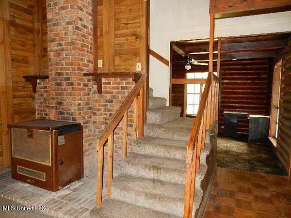 Log cabin built in 1982- front and rear porches! 2-story wood burning fire stove. 3-Bedroom upstairs and a 2 full bath. Want privacy, want woods? Call a realtor for a private showing!