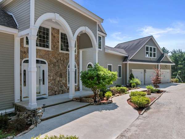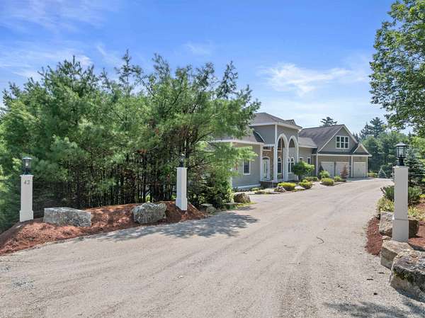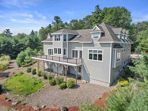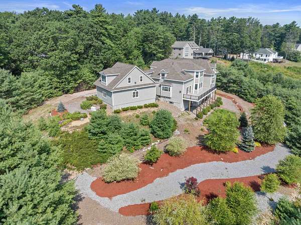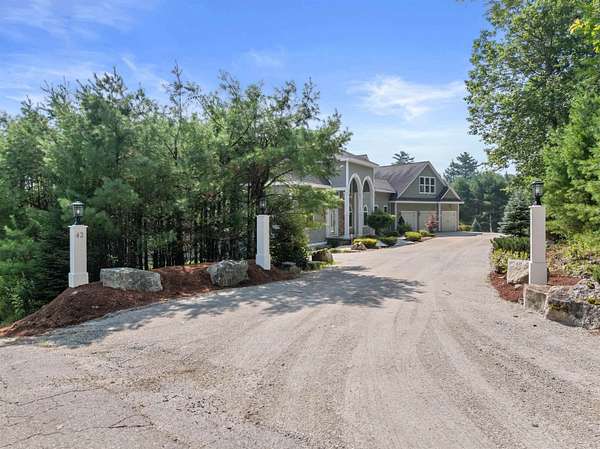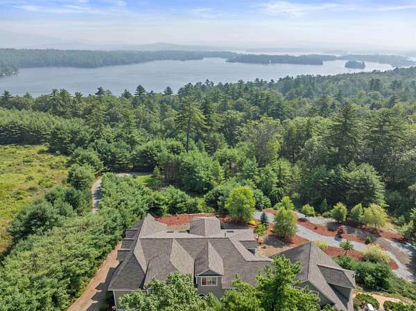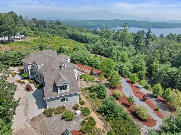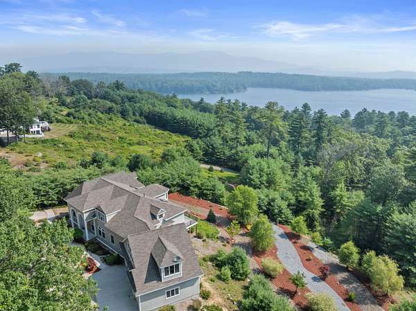 A rare offering of timeless luxury and natural beauty—this 11± acre estate captures breathtaking views of Lake Winnipesaukee and the surrounding mountains, offering a private sanctuary just moments from Long Island Beach and the nearby boat launch. Here, serenity meets sophistication in a coveted setting. Thoughtfully designed for effortless living, the home features 4 spacious bedrooms, 5 elegant bathrooms, and 2 additional flex rooms ideal for a private office, home gym, or guest suite. A newly completed upper-level addition brings refined finishes and zoned comfort with baseboard & mini splits, blending modern convenience with classic style. The heart of the home is a dramatic great room with soaring ceilings and a striking architectural balcony overlooking the living space and grand foyer—an unforgettable space to gather and unwind. The chef’s kitchen is beautifully appointed with granite countertops, high-end appliances, and a walk-in pantry with dedicated freezer. The primary suite offers a true retreat, complete with two separate spa-inspired bathrooms and luxurious privacy. Exceptional details throughout include whole-house A/C plus mini splits, Azek decking perfect for entertaining, a 3-car garage with direct entry, a full basement with high-performance HVAC and generous storage, whole-house generator, and fiber cement siding for lasting, low-maintenance elegance. A turnkey lakeside retreat where every detail invites you to relax, entertain, and live beautifully.