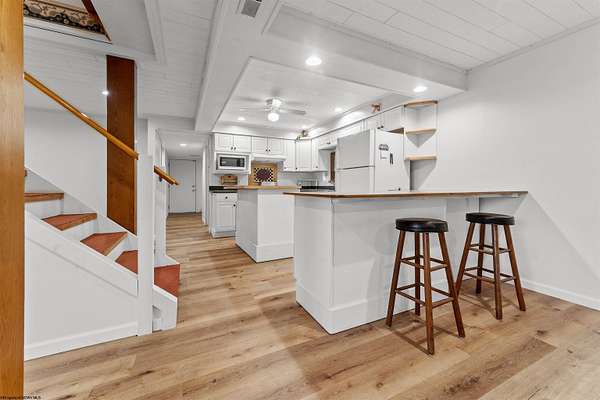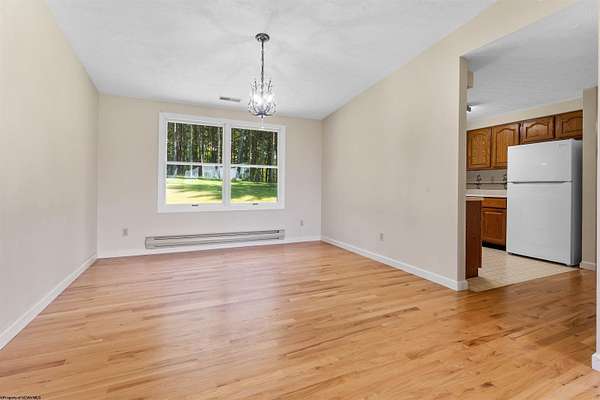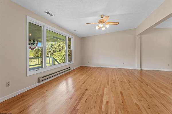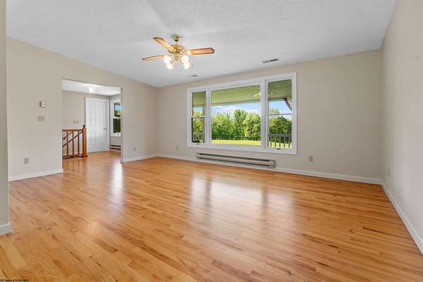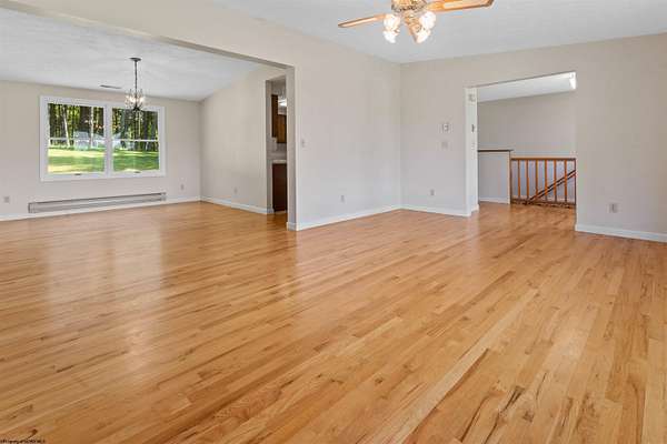 A rare opportunity for peace and tranquility in the hills of West Virginia. This beautifully maintained home offers two full kitchens and living areas, providing fully functional living spaces on both levels. Solid hardwood floors upstairs are in near-perfect condition, reflecting the meticulous care this home has received. Versatility is key, with multiple heating options including radiant heat, a heat pump, wood burner and even coal. Exit onto the front porch and take in breathtaking views of the 5+/- acre property, views that are truly hard to match anywhere in West Virginia. Come see this million-dollar view and discover the unmatched serenity of this exceptional property for yourself.