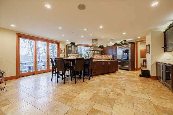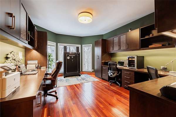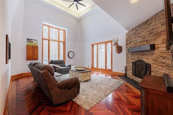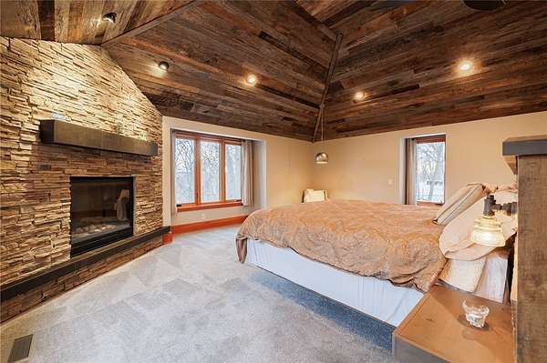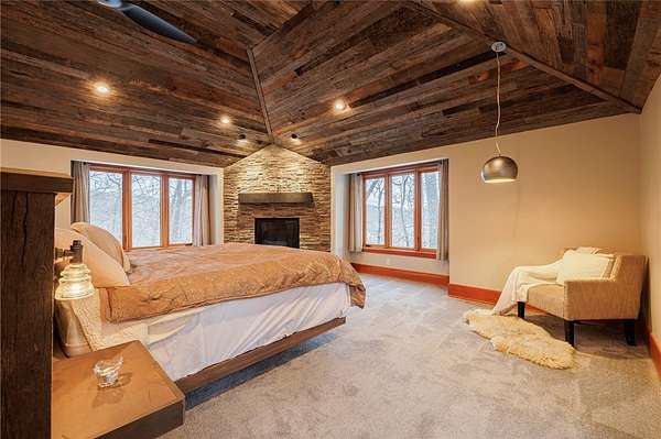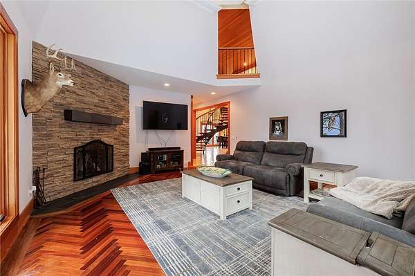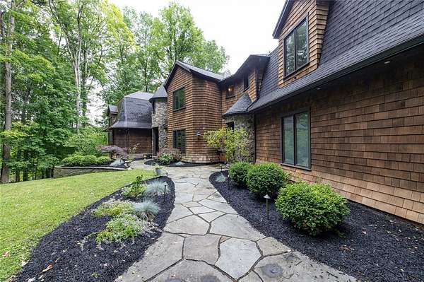 Remarks: Seldomly available opportunity to be on Lake Lacoma Drive! Secluded wooded lot with minimal maintenance. Minutes from Powder Mills Park, and Bushnell's Basin! Custom designed spiral staircase leads upstairs to generous loft space. 3 ensuite bedrooms, second floor laundry, walk in cedar closet and primary suite with separate stairwell. Primary features built-in King bed frame with storage shelves, gas fireplace, reclaimed wood cathedral ceiling, walk-in closet, and a spa-like bathroom with natural stone accents and heated floors. On the first floor you will find two half bathrooms, a built in hall tree for organization, and a chefs kitchen. Sub zero refrigerator, convection microwave, commercial gas cooktop complete with griddle. Leathered granite seated island, wine chiller and built-in aquarium. Two great rooms with wood burning fireplaces. Natural light flows throughout. Formal dining room features stunning herringbone cherry wood floors. Large home office with heated floors and built-in desks and storage. Downstairs you will find a walk-out partially finished basement with patio space. Custom home movie theater and sauna! Finished basement adds approximately 2,160 square feet of livable space, which is not accounted for in the 6,763 total sqft listed. Recently finished basement will have a ductless heating and cooling system installed prior to closing. Attached 4.5 car garage provides plenty of storage. Wrap around composite deck featuring built-in gas grill overlooks the wooded backyard! Permanent select circuit generator. Live in unparalleled elegance - schedule a private viewing today.