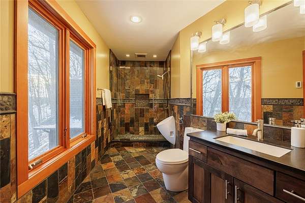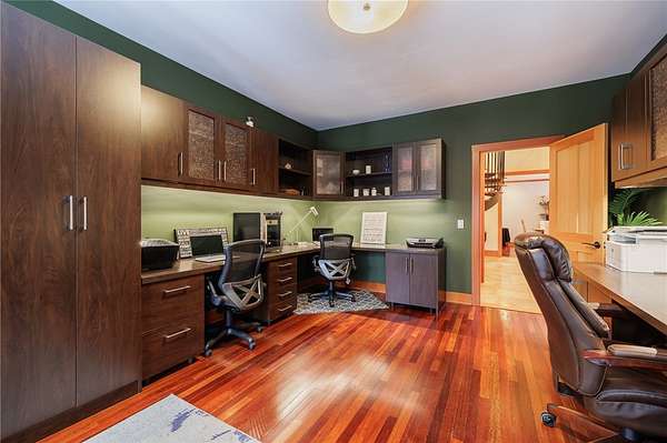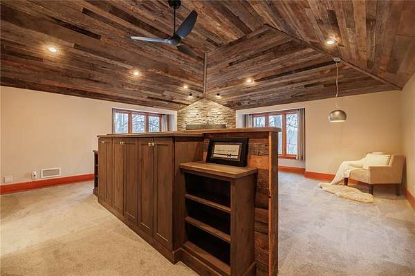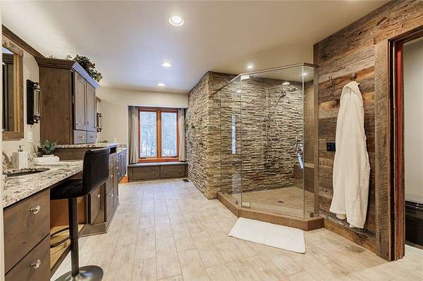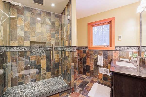 - Bath In Primary Bedroom, Breakfast Bar, Cathedral Ceilings, Cedar Closets, Den, Eat In Kitchen, Entrance Foyer, Granite Counters, Home Office, Kitchen Island, Loft, Programmable Thermostat, Sauna, Separate Formal Dining Room, Sliding Glass Doors, Solid Surface Counters, Walk In Pantry