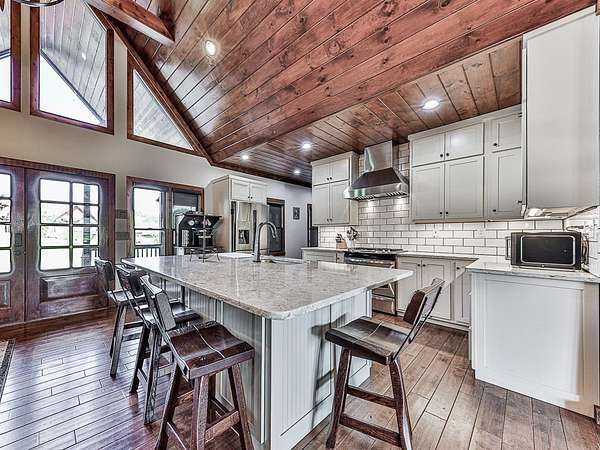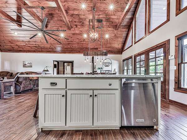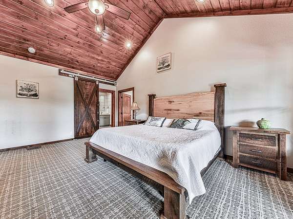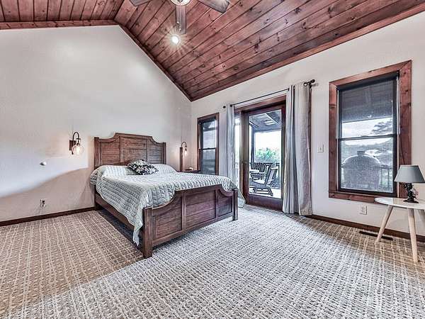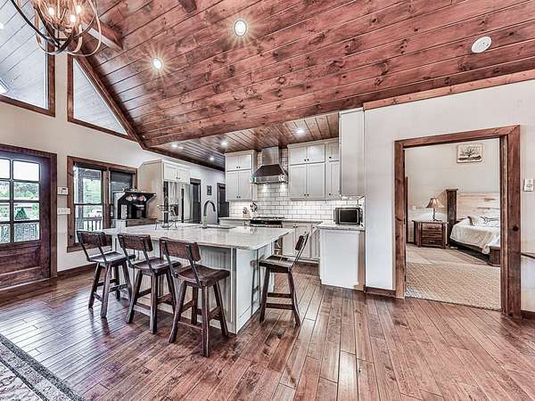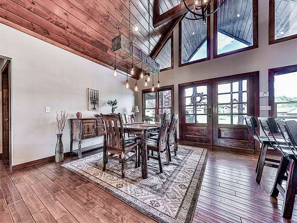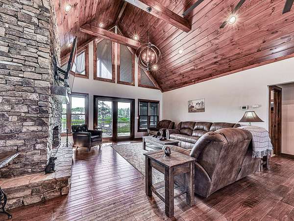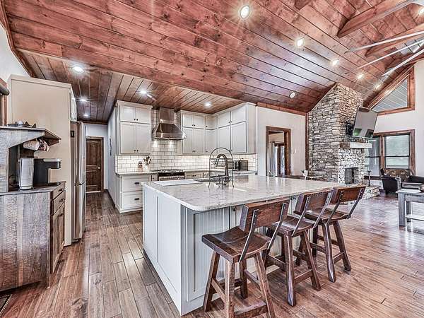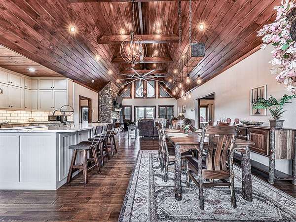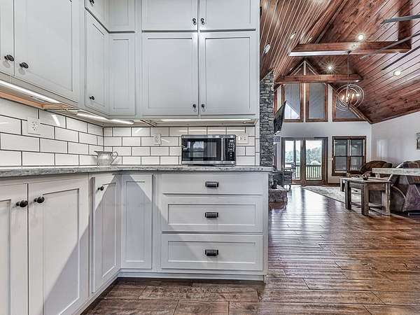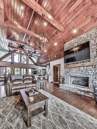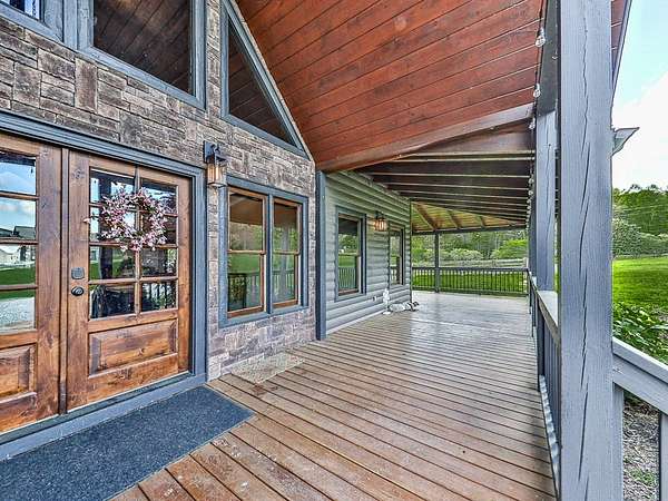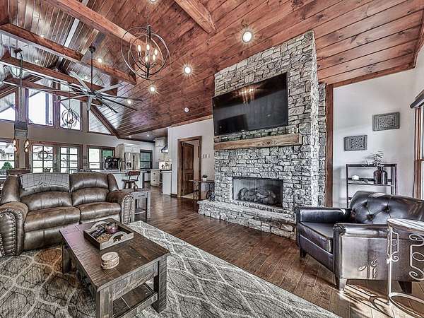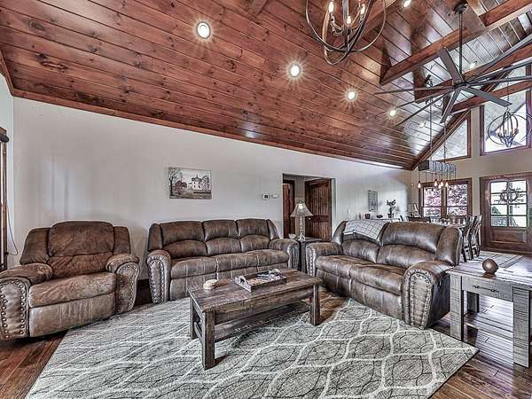 Discover the perfect mountain retreat with this beautiful 3bedroom, 3-bath home situated on 3 private acres. Designed for both comfort and entertaining, the home features warm wood flooring, a stunning floor-to-ceiling rock fireplace, and a spacious chef-style kitchen ideal for gathering with family and friends. The property welcomes you with a gated entrance and circular driveway, leading to a 3-car garage with a separate 1-bedroom, 1-full bath in-law suite above the approximately 1100 sq ft garage boasting kitchen cabinets, wine cooler and granite countertops., perfect for guests, extended family, or additional privacy. Step outside to enjoy the large fenced backyard complete with a custom-built dog kennel, making it ideal for pets and outdoor living. The newly stained decks and custom concrete fire pit create the perfect setting for relaxing evenings in the mountains. The covered rear deck features a large hot tub, allowing you to unwind while enjoying the peaceful surroundings. Additional highlights include log siding, a new high-tech security system, and the furniture is negotiable.This incredible property offers the perfect combination of privacy, comfort, and mountain lifestyle—with so much more to discover.