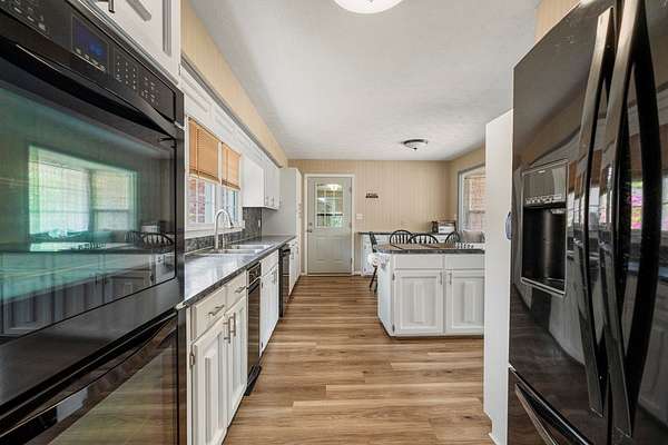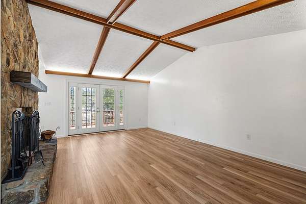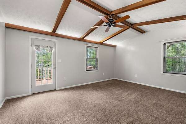 Welcome to your own private retreat on just over 3 secluded acres, offering peaceful pond views, exceptional outdoor living, and a versatile layout designed for both comfort and functionality. This 5-bedroom, 3-bathroom home features over 3,100 square feet, complete with a fully finished walkout basement and multiple access points to your backyard oasis. The main level includes a spacious living room with exposed beams and a wood-burning fireplace, a breakfast area, and a separate dining room with a bay window. The well-appointed kitchen offers ample space, with all appliances conveying. The primary suite features private deck access, creating a seamless indoor-outdoor connection. Two additional bedrooms and a full bathroom complete the main level. The finished basement expands the living space with a second living area, two additional bedrooms, and a fully renovated bathroom. With direct walkout access to the patio and in-ground saltwater gunite pool, this level is ideal for entertaining or multi-generational living. Outdoor features include a full-length back porch overlooking the pond and a beautifully positioned pool area designed for both relaxation and entertaining. The property also includes an oversized 2-car garage and a large workshop with electricity. Additional highlights include built-in bookshelves, charming window seats, and a functional laundry room with a utility sink. The washer and dryer convey. The home is connected to public water and also includes an existing well. This property offers a rare combination of privacy, space, and lifestyle, ideal for those seeking a serene setting with room to live, work, and entertain.