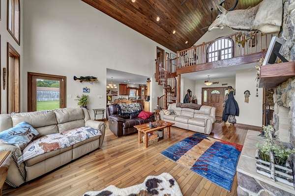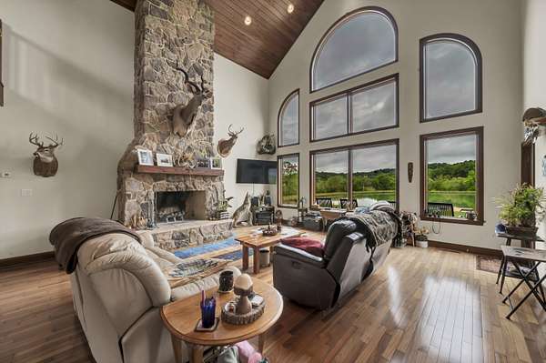 Absolutely stunning rare gem of property that literally has it all! Welcome to where outdoorsman paradise meets country tranquility with endless features throughout. Entering from your private black top drive you will notice the majestical lay out of your gorgeous stoned facade home sitting peaceably adjacent to the serene and scenic 2 acre lake with dock and bridge. As if that is not charming enough, a second glimpse reveals the beautiful simplicity of country living with plank fencing, storage sheds, and tobacco and livestock barns. An amazing and gorgeous 2 story home boasts of elegant hardwood floors, granite countertops, cathedral wood ceiling, and a 20 ft stone wood burning fireplace. Its large great room windows provides breathtaking views. All this sitting on 172 beautiful evenly blended acres of wooded and open land featuring a tower stand, tree stands, 2,000 lbs feeder, heavily stocked ponds, plentiful wildlife, marketable timber and entirely fenced perimeter. Make this turnkey farm your dream homestead or utilize its unlimited potential as even a possible hunters retreat or Air BnB lodge as each bedroom is set up with its own bathroom. This property is one of a kind!