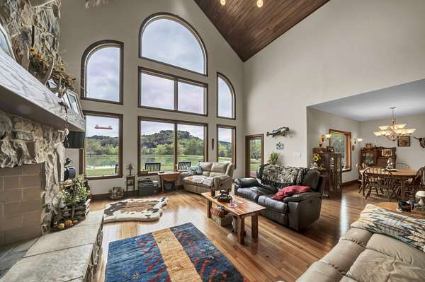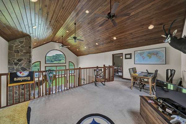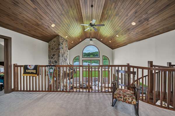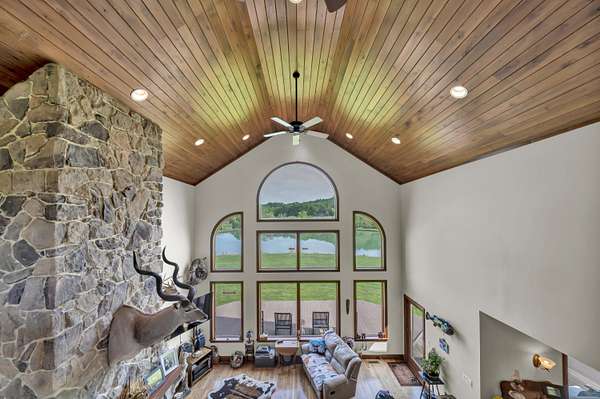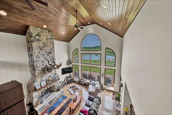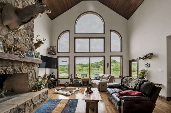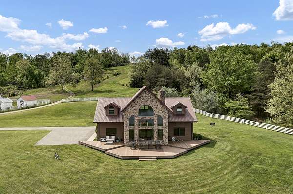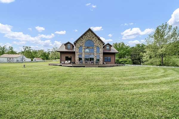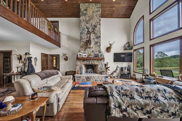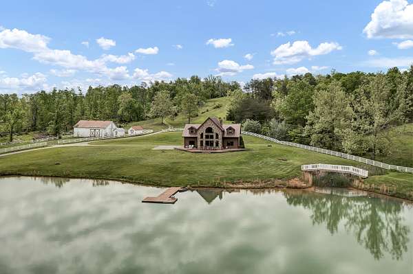 Absolutely stunning rare gem of property that literally has it all! Welcome to where outdoorsman's paradise meets country tranquility with endless features throughout. Entering from the private black top drive you will notice the majestical lay out of your gorgeous stoned facade home sitting peaceably adjacent to the serene and scenic 2 acre lake. As if that is not charming enough, a second glimpse reveals the beautiful simplicity of country living with plank fencing, storage sheds, tobacco and livestock barns, pasture and hayfields. The gorgeous 2 story home boasts of elegant hardwood floors, granite countertops, cathedral wood ceiling, and a 20 ft stone wood burning fireplace. Its large great room windows provides breathtaking views. All this sitting on 172 beautiful evenly blended acres of wooded and open land featuring a tower stand, tree stands, 2,000 lbs feeder, heavily stocked ponds, plentiful wildlife, marketable timber and perimeter fencing. Make this turnkey farm your dream homestead or utilize its unlimited potential as even a possible hunters retreat or Air BnB lodge as each bedroom is set up with its own bathroom. This property is one of a kind.