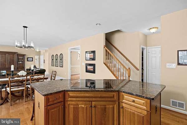 - Additional Stairway, Breakfast Area, Carpet, Ceiling Fan(s), Chair Railings, Combination Kitchen/Living, Crown Moldings, Dining Area, Family Room Off Kitchen, Gourmet Kitchen, Island Kitchen, Pantry, Recessed Lighting, Skylight(s), Soaking Tub Bathroom, Sprinkler System, Stall Shower Bathroom, Traditional Floor Plan, Upgraded Countertops, Walk-In Closet(s), Window Treatments, Wood Floors
