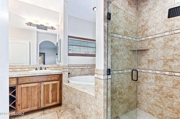 Range Priced $825K-$850K. NO HOA! VAIL SCHOOL DISTRICT! Experience elevated desert living in this exceptional 4-bedroom, 3.5-bath residence, thoughtfully designed with two primary suites-one on the main level for effortless convenience and another upstairs offering heightened privacy and access to its own panoramic mountain-view balcony. From sunrise silhouettes to sunset glow, the vistas are truly breathtaking. At the heart of the home, the chef's kitchen sets the standard for luxury, showcasing high-end Thermador appliances and a dedicated wine cooler. The outdoors features a spacious, fully enclosed backyard ideal for pets, gatherings, or future pool plans. Beyond the fenced area, the property extends across nearly 2.5 acres, providing rare flexibility to store RVs, trailers, and toys Design the RV garage, workshop, or guest casita of your dreams. The possibilities are as expansive as the views. Elegantly appointed and uniquely versatile, this home blends modern luxury with the freedom and space that desert living is known foran extraordinary retreat ready to exceed every expectation.