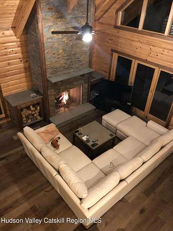 The Catskills Called -- And This Log Cabin Answered. Privately set among the trees with sweeping mountain views, this beautifully maintained log cabin is minutes to Windham Mountain Club and Main Street. Spanning three levels with five bedrooms and three full baths, it offers open-concept living with a soaring great room, floor-to-ceiling stone fireplace, and a wall of glass framing the views. The kitchen features custom cabinetry, granite counters, and stainless appliances including a wine fridge. Enjoy outdoor living on the wraparound deck or from the covered porch. The home includes an electric back-up hot water heater in addition to a gas-fired primary system, ensuring you'll never run out of hot water, plus a 10K water softening and filtration system. Architectural boulders and stonework accent the landscaped property, complemented by a three-car detached garage. -- perfectly located near skiing, dining, and hiking.
