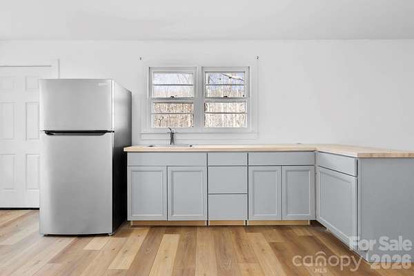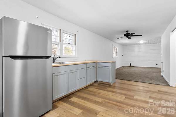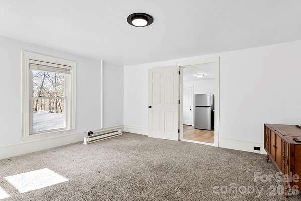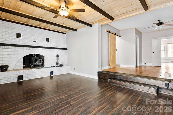 The quintessential farmhouse awaits! Enjoy the spring weather, front-porch rocking on the wraparound porch! This recently updated 4 Bed 2 bath home is the mountain oasis you've been looking for. Situated on 2.93 acres of unrestricted, level land only minutes to Asheville! Step in through the front door to an open floor plan concept with a grand exposed brick fireplace. Original hardwood floors will lead you into the primary suite on main with barn door accents and a private sitting area. Upstairs you will find 3 bedrooms, a full bath, and a kitchenette- perfect for 2nd living quarters! A new roof with 40 year shingles and new gutters were added in 2020. New septic in 2023! Feel like you stepped back in time as you enjoy the peaceful meadow!