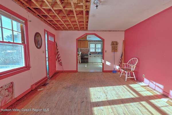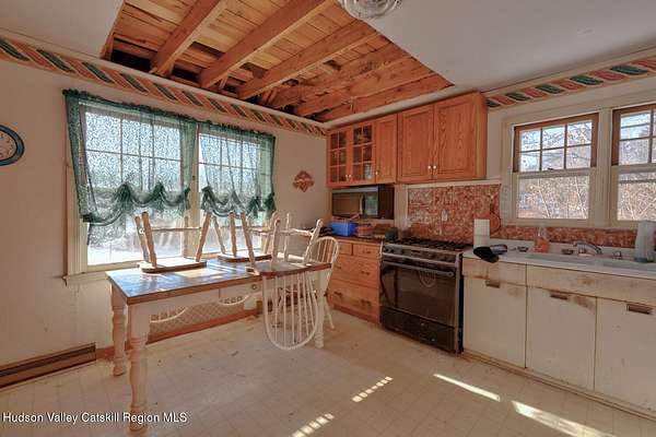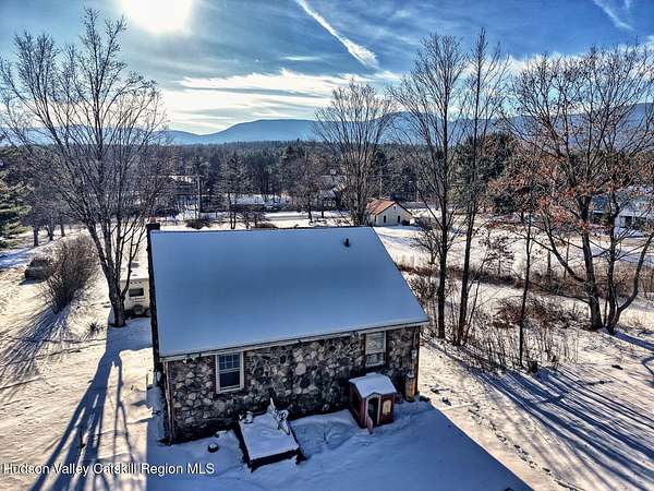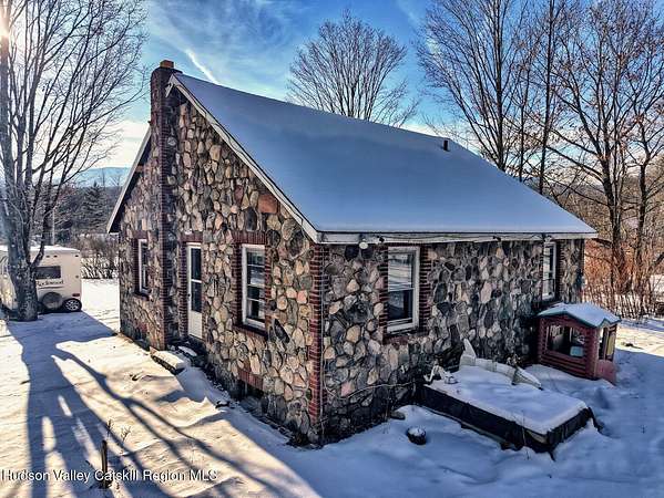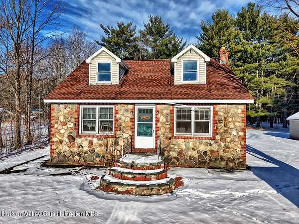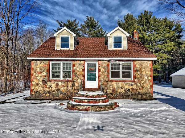 A 2 to 3 Bedroom Cape on 12.1 Acres with Beautiful Mountain Views & a Garage! The home needs a full renovation. The 1st floor has a living room, an eat-in kitchen, 2 bedrooms, and a bath. The 2nd floor is finished with 1 large open room. There's a 1 car garage. There are 2 driveway entrances on Old Route 23 and Frank Hitchcock Rd. The acreage is level, wooded, and ready for play. In the home, there is 1 bedroom than cannot be accessed and there is no functional heating system. The home has a unique and stylish stone exterior with a newer roof - which is approximately 2 years old. It's a great opportunity for a special home and property. The home has great proximity to the area's destinations and attractions as it's only minutes to the Business District of Cairo with shops, eateries, bakeries, coffee bars, a brewing company, & the town park. It's only 15 minutes to Windham Ski Mountain, 12 minutes to Zoom Flume Water Park, 30 minutes to Hunter Ski Mountain, 12 minutes to Green Lake, and 20 minutes to Dutchman's Landing & the Hudson River. View our 3D virtual tours of the home and property, our floor plans, and our multi-media website.