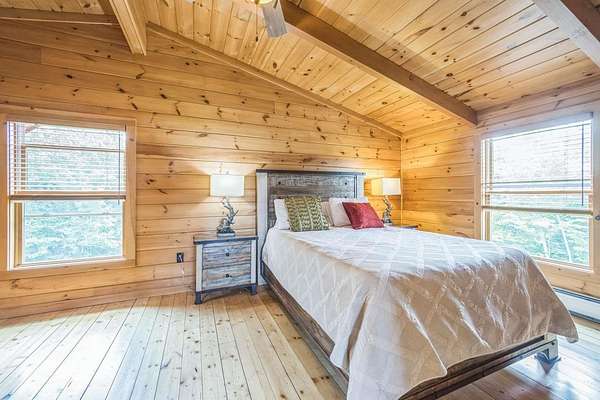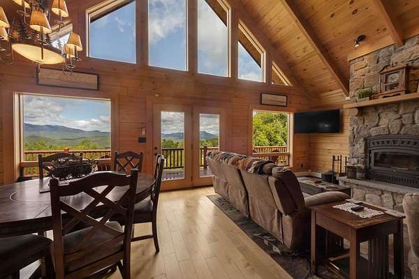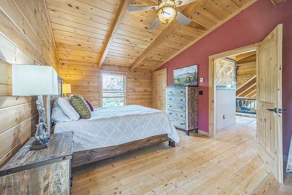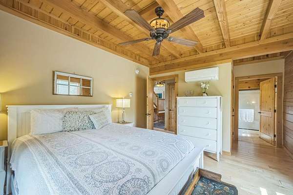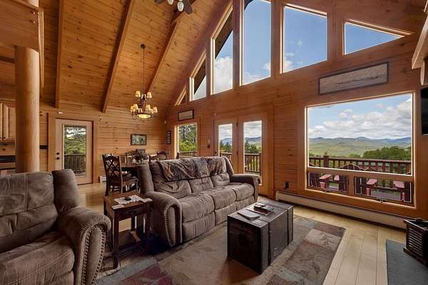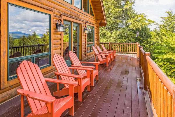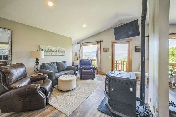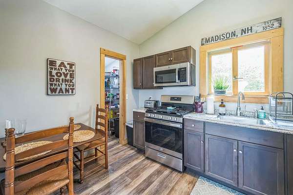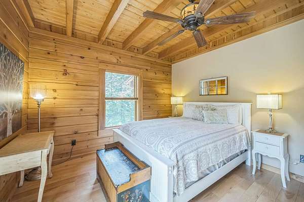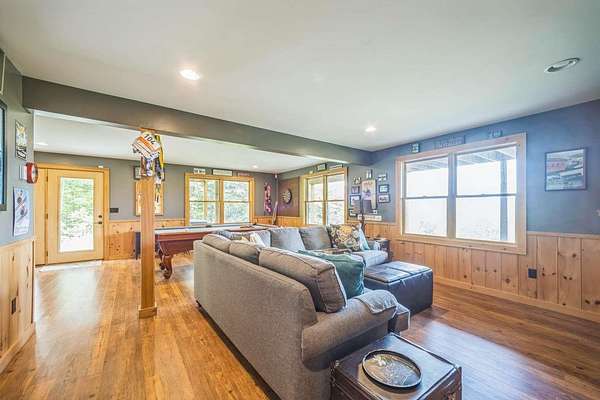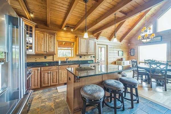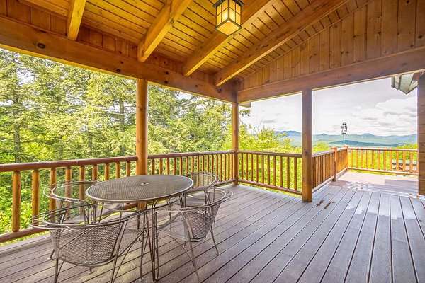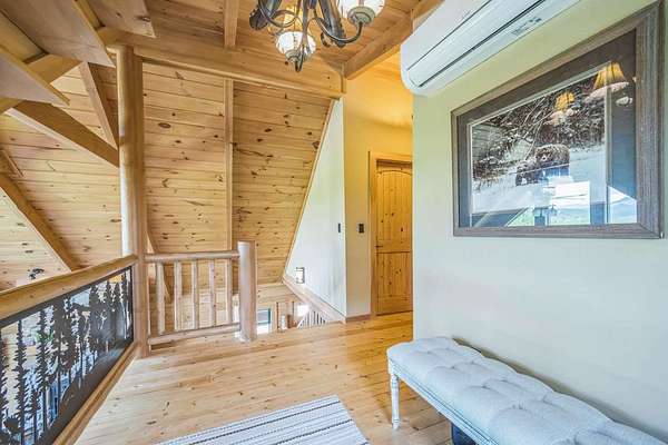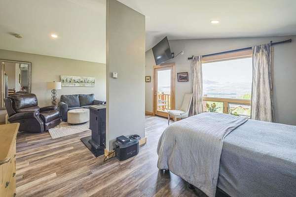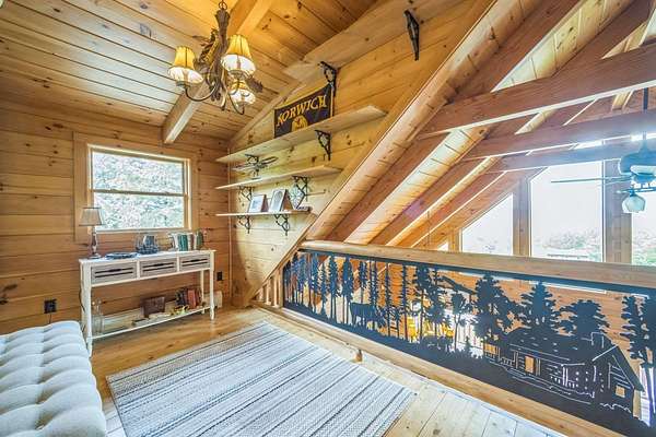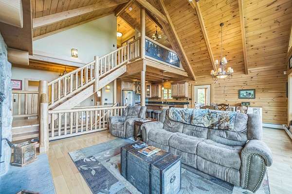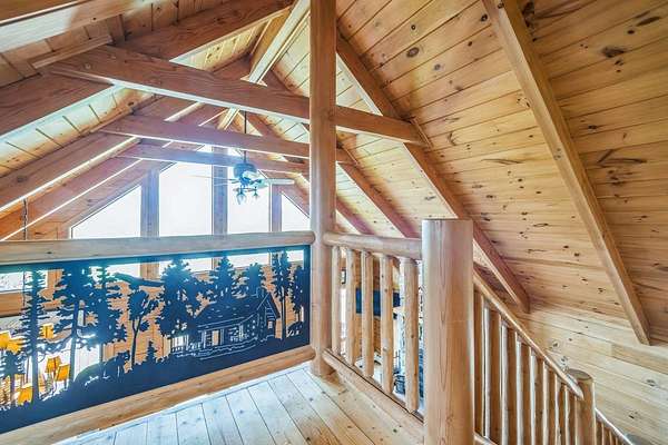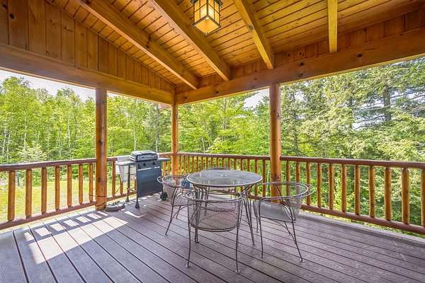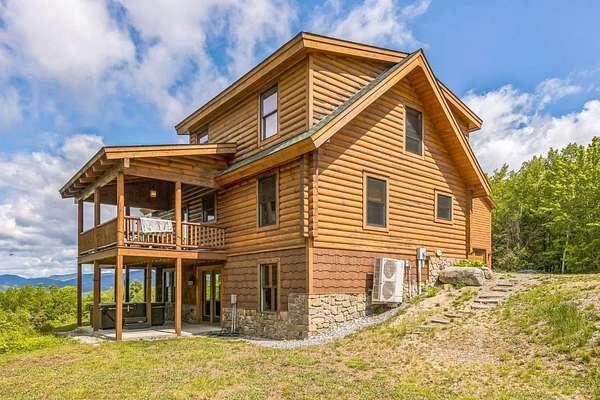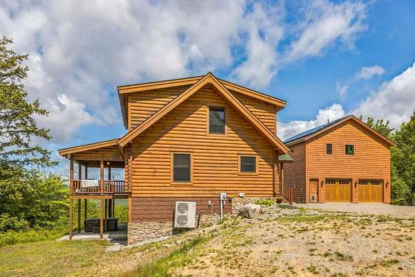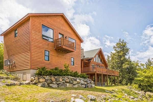 Welcome to 42 Peak Vista lane, a modern log cabin home built by renowned Natural Elements home builders in 2016. The 2 car garage, full basement storage and 650sqft apartment above was built in 2021. This log home has panoramic views from Mt Washington to the Sandwich mountains and is situated in 3.85 wooded acres on a quiet cul-de-sac road. Top level consists of a loft and separate master bedroom with ensuite bath and walk in closet. There is also a separate hallway walk-in closet off of the loft. Main level has a ½ bath, kitchen, dining area and living area with a wood burning fireplace. There is another large bedroom on this level with a walk-in closet and ensuite bath. Downstairs is a living and game area, closet, bedroom, laundry and mechanical room as well as a full bath. French doors will take you outside to a hot tub with views to the mountain range. The detached 2 car garage is insulated/finished with door openers. It is pre-wired for an electric car charging system. Basement is accessed from an interior staircase to a steel vault door with security lock for secure storage. On top floor of garage is a complete studio apartment with kitchen, bath and laundry facilities. It’s heated by a pellet stove and mini-split, with panoramic mountain views through large picture windows. On top of garage roof is a 5.4 kw grid tied solar system. A 10kw kohler auto house generator. House and garage restained in Sept.
