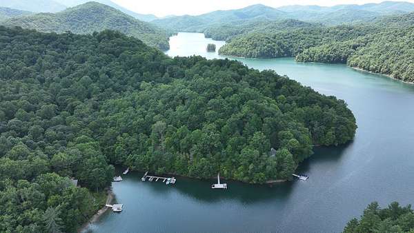 Unique 10.5 ACRES Nestled(lakefront) acres in the serene, wooded setting of Nantahala, NC., where you can have your own Private dock with your home up high to capture all the amazing Lake and Mountain Views, this Unique opportunity to own ACREAGE on Lake Nantahala! Superior views, build your estate home overlooking the lake and mountains. Plus, a slip in the community dock area in perpetuity. Several house sites on this incredible parcel, there are knobs for homesites, shared well, gravel roads. You will enjoy the pristine waters of Lake Nantahala, and high elevation to keep you cool. Enjoy all 4 seasons- Come experience the beauty of Nantahala- you can build a garage, guest house, you will have lots of options. Come be creative and capture your piece of the Nantahala Mountains, close to hiking trails, Wayah Bald, Franklin, NC, 3 hrs from Atlanta airport, 30 minutes from Andrews airport where you can fly yourself. 2hrs to Asheville or Knoxville airport. You can be on top of the mountain to take in the Big Views or down on your Lake Front lot enjoying the crisp clear waters of Nantahala Lake!