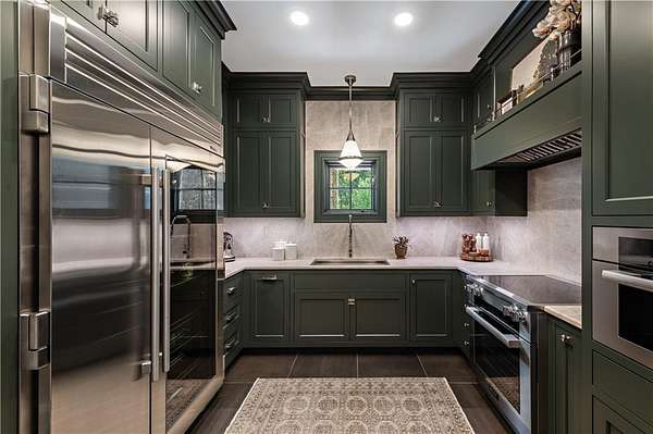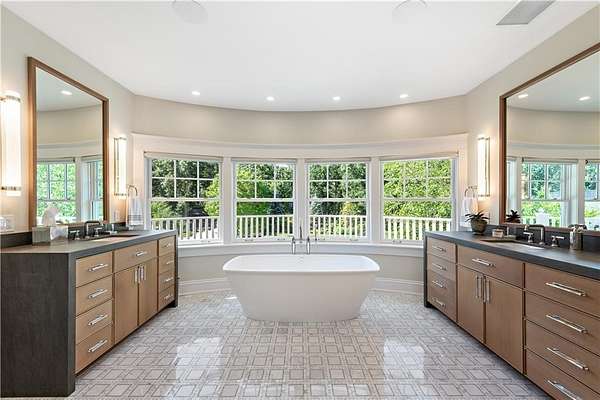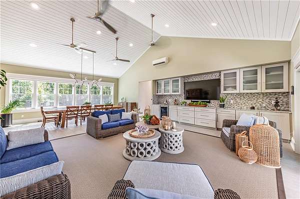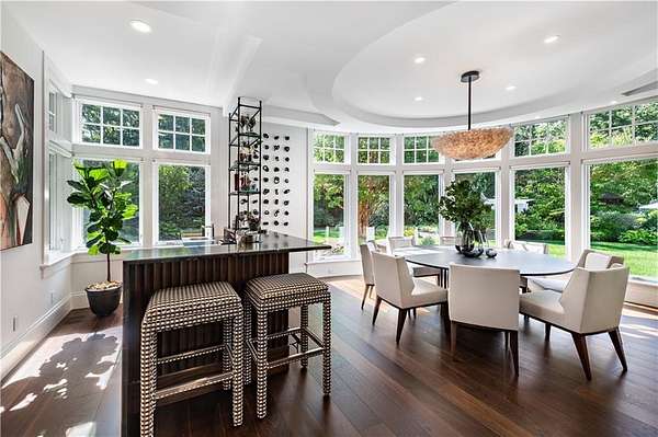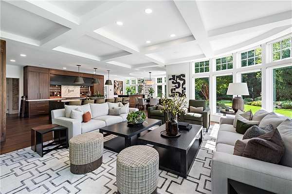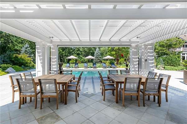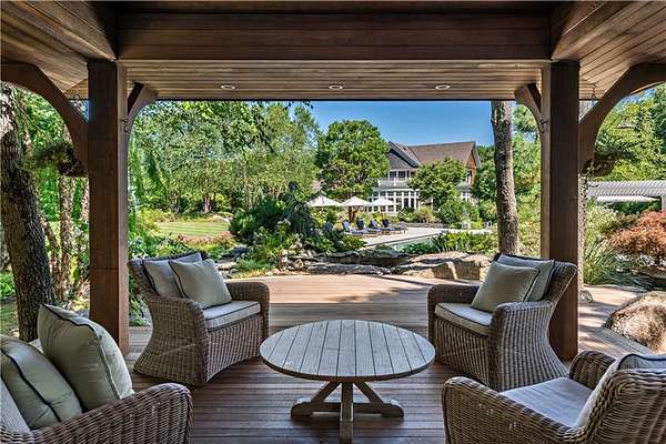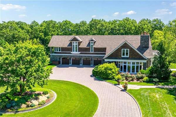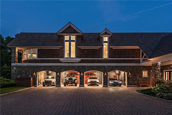 "Sprawling Oaks," an incomparable trophy estate and seven acre private gated compound surrounded by hundreds of acres of conservation land. This exceptional property embodies the ultimate blend of privacy, luxury, and resort-style living, defined by stunning architecture and impeccable design. The main residence has been completely reimagined by Blakely Interior Design, showcasing Mac Davis flooring, wallpaper by Phillip Jeffries, and a dramatic two-story spiral staircase. The designer kitchen features custom walnut cabinetry, dual Waterstone faucets, and floor-to-ceiling windows that fill the home with natural light. Mature landscaping and specimen trees curated by Gates, Leighton & Associates. Designers including Waterworks and Holly Hunt contribute to the home's refined aesthetic. Perfect for entertaining, the grounds feature an in-ground saltwater pool, cabana with dual kitchens, bathroom, and laundry area. Additional resort-style amenities include a helipad, stone pizza oven, outdoor sauna, and chicken coop. A separate studio offers flexible use as an office, gym, yoga, or art space. Interior highlights include a home theater, elevator, and state-of-the-art security system. A four-bay garage accommodates car collections, while a separate industrial garage provides space for utility vehicles or boats. Ideally situated near private aviation facilities and Rhode Island's finest beaches, this estate was recently featured in Boston Home Magazine.