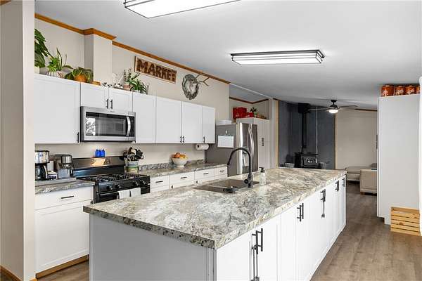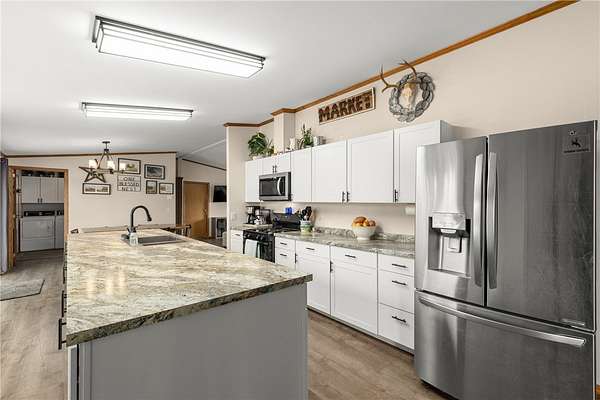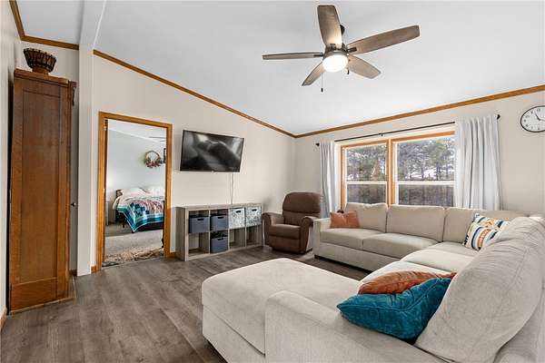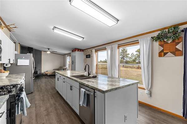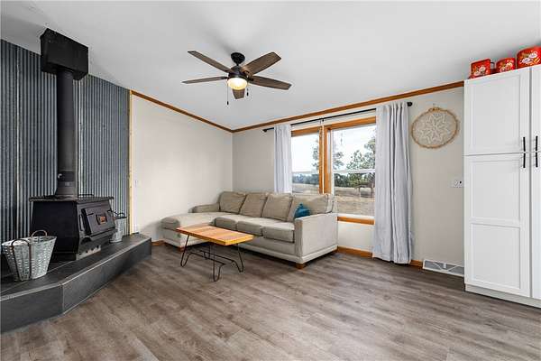 Take a drive away from the city roads and find your peace. This home and 20 acre parcel have so much to offer. Inside the home you will find 3 spacious bedrooms, 2 full bathrooms, 2 living spaces, a newly renovated kitchen, an eat in dining, a convenient mud room with laundry and half bath. This home is comfortable and cozy, ready to warm and relax you after you spend your time outside! Outside you will find a 20x40 shop and a nice, large shed. The property is currently set up for cattle, chickens and pigs. With a fully fenced property, the possibilities are endless! The lot offers both the seclusion of trees, but also a cleared pasture area for livestock. ATV trail present to explore. One bonus of this property is the foundation that has already been poured for a new home with huge shop or a barndominium type layout. Live on the property while you build! Home on Magnum foundation.