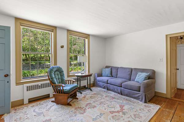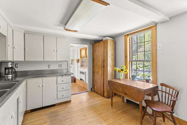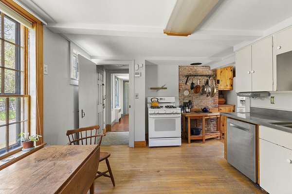Welcome to the historic Gov. John Hubbard House, a beautifully preserved home on 3.1 acres just a short walk to the Kennebec River, shops, dining, and the waterfront in downtown Hallowell. Built c.1775-1800, this property blends Federal, Cape, and Greek Revival architecture - thoughtfully updated throughout. Inside, enjoy wide pine floors, restored antique windows, a large front parlor with fresh paint and natural light, an elegant dining room with grand brick hearth, and a cozy living room with a working fireplace. The primary suite features a barrel vault ceiling, and the home offers generous centralized storage. A charming butler's pantry includes a second staircase to a private rear bedroom and bath. A first-floor in-law apartment with separate entry, bath, and kitchenette is ideal for guests or multigenerational living. A first-floor laundry is conveniently located between the mudroom and in-law apartment. The attached 3-story barn offers a large unfinished space for gatherings, studio use, or storage. The carriage house provides two levels of powered space with level driveway entry. Outside, enjoy historic gardens, revitalized lilacs, berries, apple trees, 2 European Linden trees and a stone patio overlooking the rolling side yard - a perfect spot for morning coffee. Wooded areas, rolling lawn, and a small stream add to the charm. Modern updates include new gutters with leaf guards. A rare offering - schedule your private showing today!