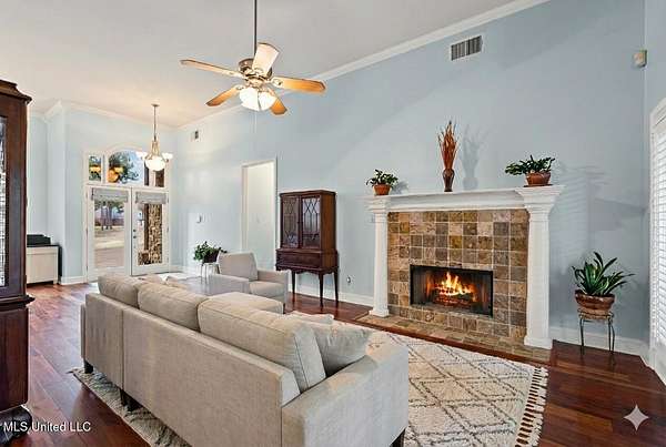 420 Buck Cove, Hernando, MS | Private 3-Acre Estate in Morrow Crest | Pool, Privacy & Multi-Generational Living Tucked away on a private cove within the sought-after Morrow Crest neighborhood of Hernando MS, this 4,530 sq. ft. estate makes an unforgettable first impression. A circle driveway and a grand stone-accented front entry welcome you to this 3-acre retreat, complete with a spacious 3-car garage. Located just outside Hernando city limits, you can enjoy quiet, estate-style living with no city taxes. Inside, warm wood floors and soaring 12-foot ceilings define the open-concept living and dining areas. The chef's kitchen features granite counters, a gas range, walk-in pantry and flows effortlessly into a cozy hearth room where walls of windows frame scenic wooded views. The main level offers a split floor plan for privacy, highlighted by an expansive primary suite with bayed windows, a sitting area, and a spa-inspired bath featuring a luxury shower with multiple heads and body jets. Bedrooms 2&3 are both spacious and have walk-in closets. The lower level is a game-changer for multi-generational living. This walk-out basement (included in the 4530 sf) includes a 4th bedroom, full bath, and massive living space . . . ideal as an in-law quarters, revenue-generating Airbnb, teen hangout, homeschooling center, or quiet work-from-home space. Step out to the covered patio and heated saltwater pool, or relax on the upper balcony with a cup of coffee overlooking the picturesque wooded area with frequent wildlife sightings. As a bonus, the chicken coop is included! Despite the secluded feel, you are just minutes from the Hernando Square and I-69 (for easy commute to Memphis for work). Additional Amenities include: Granite countertops in all bathrooms, a dual-sided fireplace, a large laundry room with sink, a storm room for peace of mind, and abundant storage space. Outside, a charming spiral staircase connects the balcony to the downstairs patio for seamless entertaining. A home with this much versatility and style is rare . . . schedule your private tour today. (4530 sf of living area includes the full walk-out basement. Some photos are virtually staged.)