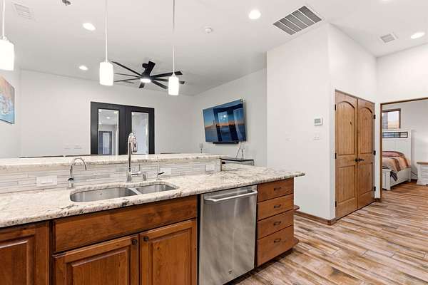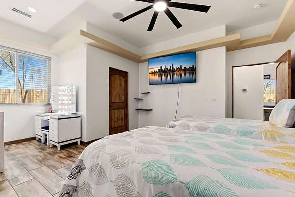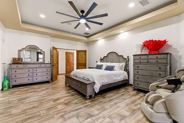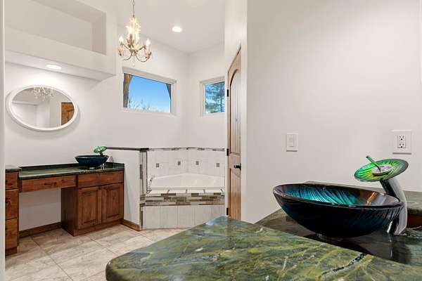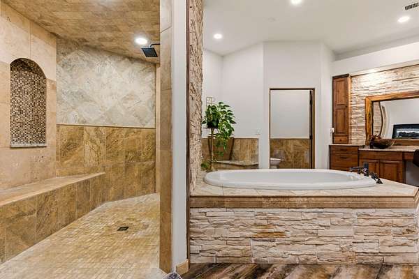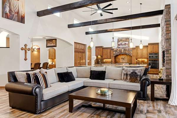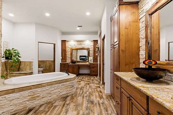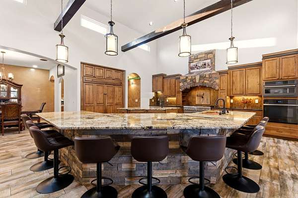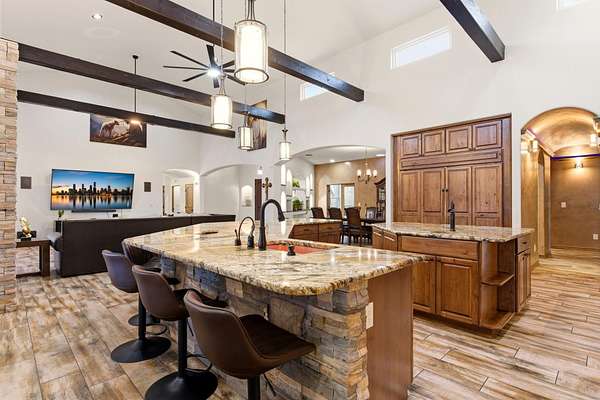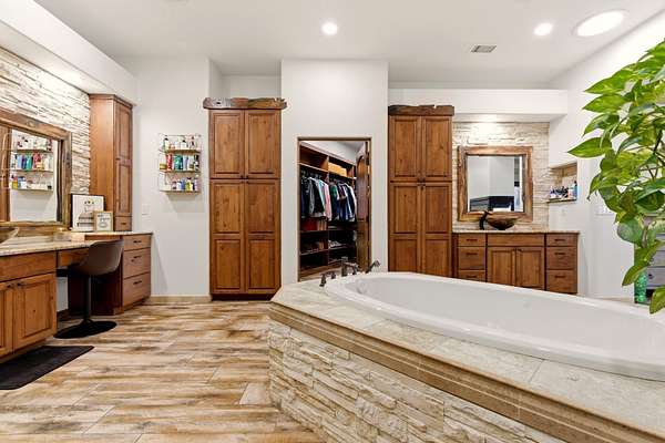 - Beamed Ceilings, Breakfast Bar, Ceiling Fans, Dual Sinks, Garden Tub Roman Tub, Great Room, High Ceilings, High Speed Internet, In Law Floorplan, Jack And Jill Bath, Jetted Tub, Kitchen Island, Main Level Primary, Multiple Living Areas, Separate Shower, Skylights, Tub Shower, Walk In Closets, Wet Bar