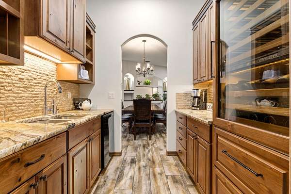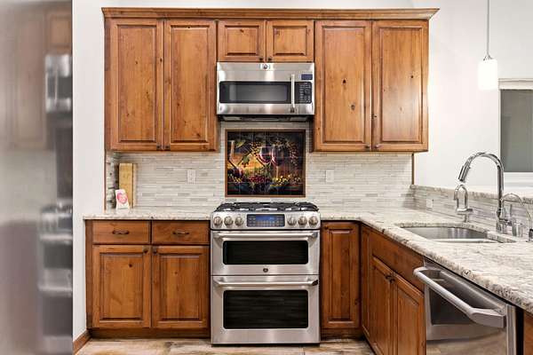 - Built In Gas Range, Convection Oven, Dishwasher, Disposal, Double Oven, Range Hood, Refrigerator, Water Softener Owned, Wine Cooler