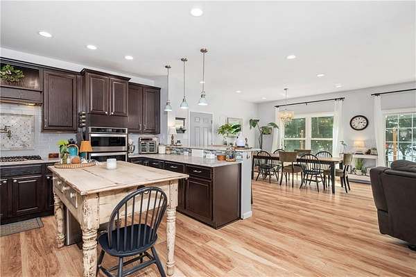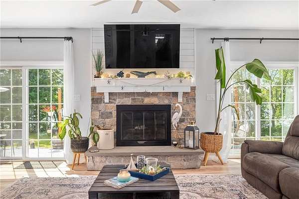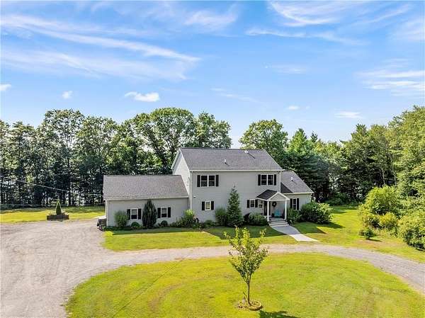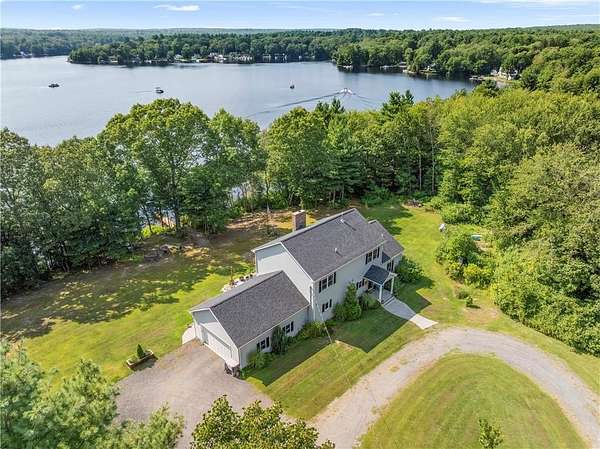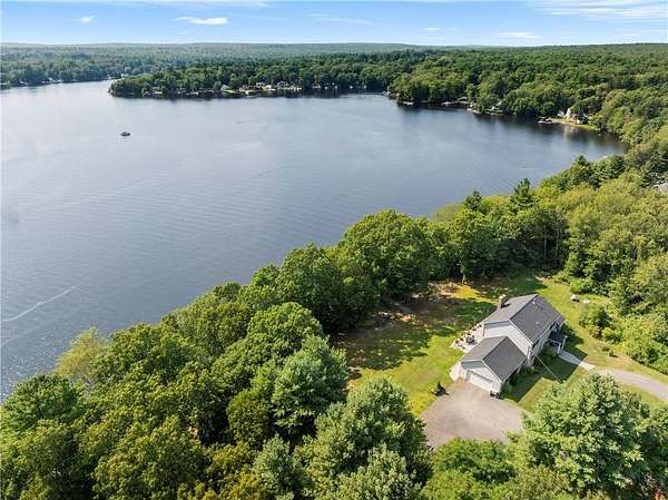 PRIVATE Waterfront Retreat! Set on 4 serene acres with over 450' of private waterfront (with the ability to subdivide a 2nd waterfront lot!), this 2800 sq ft Colonial, built in 2019, offers the perfect blend of modern luxury and natural beauty. Privacy is not sacrificed for waterfront living here, as the house is SECLUDED and set over 200' from the road! This home features an attached 2 car garage, soaring ceilings, central a/c, and an open floor plan that's ideal for both entertaining and every day living. The first floor primary suite is a true retreat, boasting views of the lake and a massive walk-in closet that flows into a private full bath. The heart of the home is the spacious open living area, complete with a striking stone fireplace, while the kitchen impresses with a huge pantry closet, a full ventilation hood over the propane cooktop with pot-filler, its quartz countertops and ample space for culinary creativity. A dedicated laundry room on the 1st floor adds convenience, and a partial 5' concrete basement provides abundant storage! Outside, a beautiful concrete patio invites you to relax & take in the lake views & sunsets, while your private dock offers direct access to the peaceful waters of Wilson's Reservoir - a full recreation lake -just over 100 acres, with only 25-50% of its privately owned shoreline developed. Whether you're boating, fishing or simply enjoying the peaceful setting, this property offers a rare opportunity to embrace lake life at its finest.