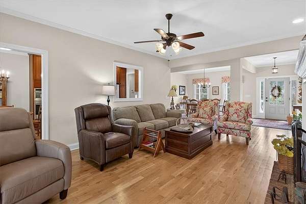 *Photos coming late Friday 3/27/26!!!* Custom-designed and built four-sided brick ranch on over 2.5 acres in sought-after Ball Ground-with a creek and no HOA! This beautifully crafted home offers 9-foot ceilings on both the main level and the full basement, creating an open feel throughout. All hardwood floors add warmth and continuity across the home. The main living space flows into a well-appointed kitchen featuring quartz countertops and custom finishes. Downstairs, the finished portion of the basement expands your living options with a bedroom, full bath, recessed lighting, living area, and a kitchenette with pantry-ideal for guests, in-laws, or extended living. Outdoor spaces invite you with a welcoming front porch, screened porch, and patio overlooking the private acreage. A two-car attached garage plus an additional detached two-car garage provide ample space for vehicles, storage, or hobbies. A Generac whole-house generator adds peace of mind year-round. Offering 4 bedrooms and 3 full bathrooms, this home blends craftsmanship, functionality, and privacy-just minutes from the charm of Ball Ground and Canton. Motivated seller.
