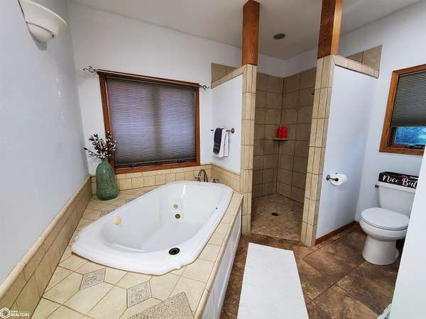 Welcome to this beautifully crafted 6-bedroom, 4-bath home nestled on a serene 1.59-acre lot, offering the perfect blend of luxury, space, and functionality. Whether you're looking for room to grow or a place to entertain, this home has it all-including a massive 46'x80' shop with a concrete floor, radiant heat, and electric A/C-perfect for hobbies, storage, or a business setup. Step inside through the attached 2-car garage into a practical mudroom entry featuring a spacious coat closet and a main-level laundry room. Heated tile floors guide you into the heart of the home-an expansive kitchen complete with custom cabinetry, abundant counter space, and a walk-in pantry. The bright dining area features a large glass door leading to the newly added, zero maintenance composite deck, ideal for outdoor dining and relaxing. The showstopping 2-story great room features soaring ceilings, a cozy gas fireplace, remote-control shades, and built-in wiring for surround sound, creating a warm and inviting space. The main-level primary suite offers a private retreat with a jacuzzi tub, separate shower, and walk-in closet. Upstairs, are 3 generous bedrooms and a full bath, and the fully finished lower level includes in floor heating, a spacious family room, game area, 3/4 bath, and two additional bedrooms! This property combines custom craftsmanship, high-end amenities, and peaceful country living-while still being just a short drive to town and a short work commute to neighboring larger towns.