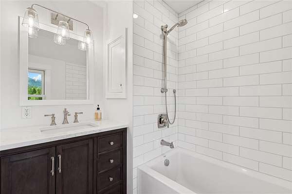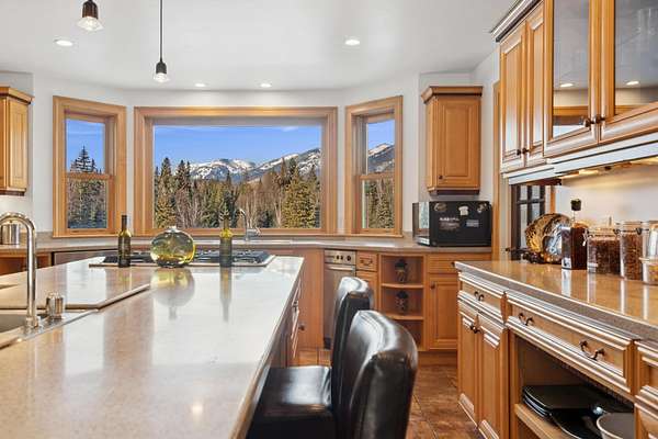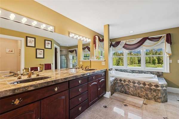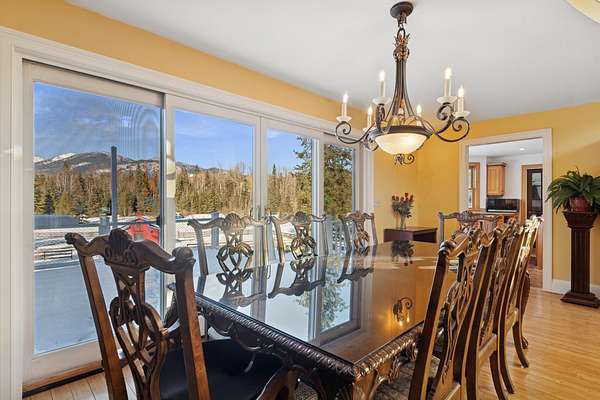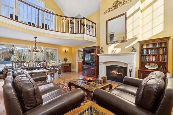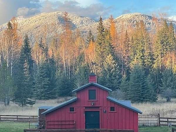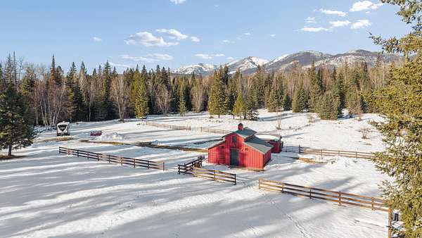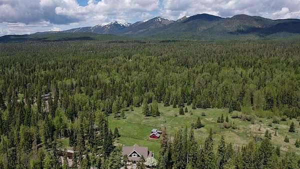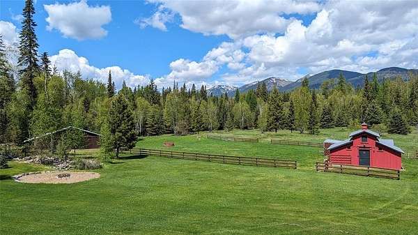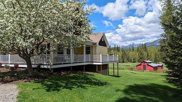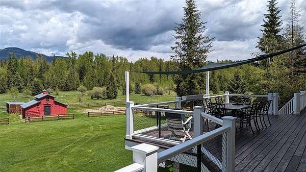 Offered is a partially updated Whitefish home built in 2000, set on just over 10 private acres at the end of the road with sweeping 180-degree views of the Whitefish Mountain Range. The property is cross-fenced for horses and includes multiple outbuildings, a 20' x 20' shop, red barn, and chicken coop. Inside, the home opens to a dramatic entry and great room with soaring 20' vaulted ceilings and bamboo flooring that fills the space with natural light. The chef's kitchen features stainless steel appliances, generous counter space, and a functional layout. The primary suite is located on the main level and direct access to the deck. With three levels of living space, the lower walkout level offers flexible use with an additional bedroom, home office, wet bar, home theater area, pool table, and custom surround sound. A wraparound deck captures expansive mountain views and abundant wildlife, creating a peaceful setting that feels worlds away while still being close to Whitefish.