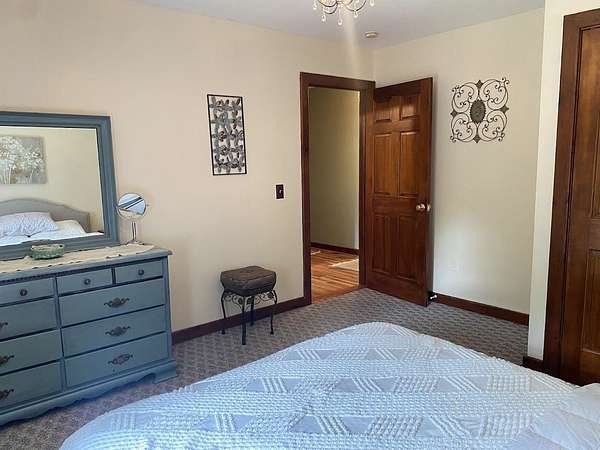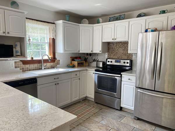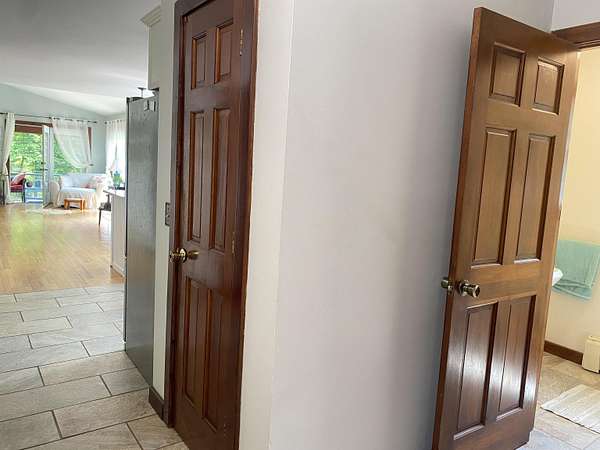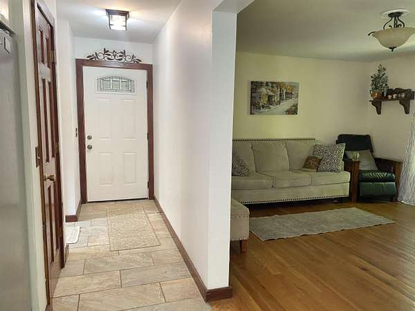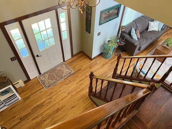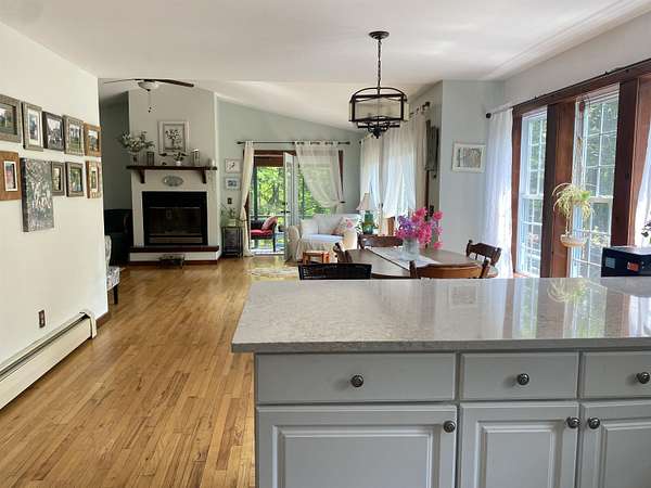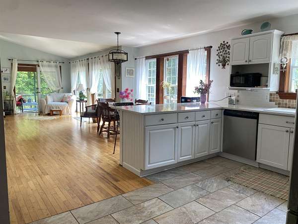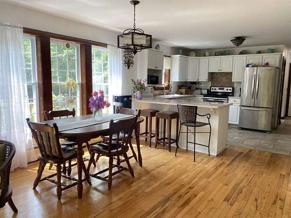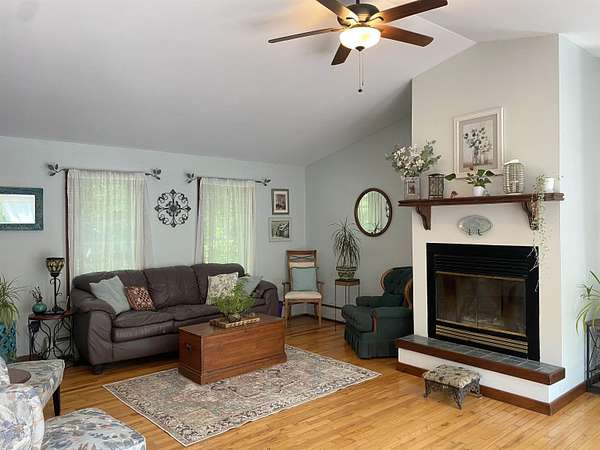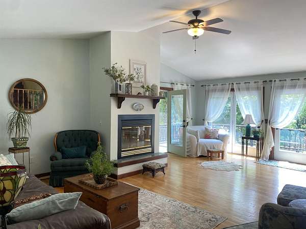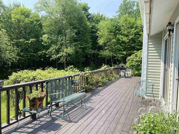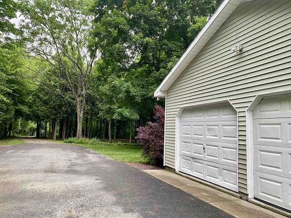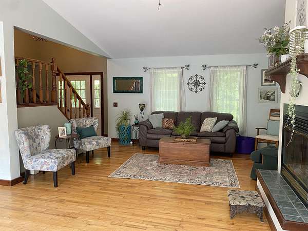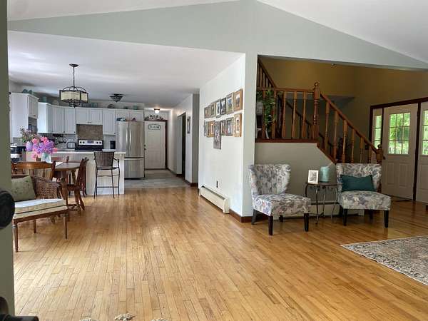 Tucked away on 38.4 acres of beautiful land, 420 May Road in Potsdam offers privacy, space, and a move-in ready home that blends comfort with functionality. This four-bedroom, three-bathroom home is set far back from the road, offering a peaceful setting with expansive outdoor space. Inside, you'll find an open-concept floor plan filled with natural light, highlighted by a vaulted ceiling in the main living room that opens up to a screened-in porch and raised deck overlooking the private backyard. The remodeled kitchen features crisp white cabinetry, tile flooring, and stainless steel appliances, making it both stylish and functional. The main floor also includes a second living room, a half bathroom, and large coat closets conveniently located by both the two-story foyer and the entrance from the attached two-car garage. Upstairs, the spacious primary suite includes a walk-through closet and full en suite bathroom, while the additional bedrooms share a large main bathroom with laundry. The finished walkout basement adds even more living space, divided into two generous areas that offer flexibility for entertainment, hobbies, or possibly home office use. Step outside to enjoy the backyard's stone patio areas--one featuring a pergola draped in grapevines that produce fruit annually--and a another with a cozy fire pit space perfect for gatherings. Built in 1996, this home offers the ideal combination of modern updates and room to roam both inside and out. Don't miss your chance to own this private retreat just minutes from downtown. Please do not drive up the driveway without an appointment, thank you!