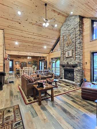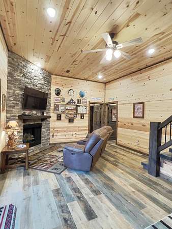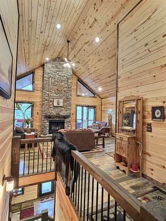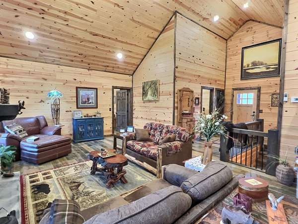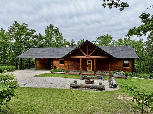 Welcome to 420 Nps-Peavine in Van Buren Mo! This beautiful custom-built Log Home nestled on 6-acres built in 2022 boasts some incredible views off the back deck looking towards Skyline drive and Big Springs Park. Featuring 3 master suites each with their own full baths along with an additional 1/2 bath, two living spaces, a fireplace both upstairs and down and one on the covered outside deck. It also has an office downstairs currently serving as a music studio for the current owners. Located 1 mile from town and 3-miles From Big Springs National Park this home has paved highway frontage and its location to access these incredible amenities the area has to offer is ideal. Make this your next forever home, vacation rental, or build another home on the property and have your family compound just a short 1-mile from the Current River! Schedule an appointment today to see this great home!