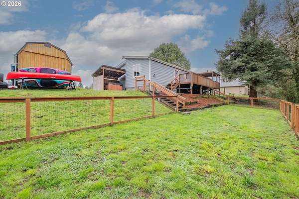 Enjoy the perfect blend of country living and convenience on 2.69 flat, private acres just minutes from shopping, dining, and local schools. This 1,560 sq ft single-level home offers a comfortable and functional layout with 3 bedrooms and 2 bathrooms, plus multiple living spaces including a family room, living room, and dining room-ideal for both everyday living and entertaining.Step outside to a gorgeous fully fenced backyard, or walk across the driveway bridge to peaceful pastures, complete with a chicken coop and barn for storage, hobbies, or livestock. Garden enthusiasts will love the fenced vegetable garden with raised beds. Unwind in the evenings by the fire pit along the creek bank, a perfect spot for relaxing and enjoying the stars. There's also RV parking with hookups, giving you plenty of space for guests, travel gear, or recreational vehicles.A rare opportunity to enjoy privacy, space, and rural charm while staying close to town amenities.