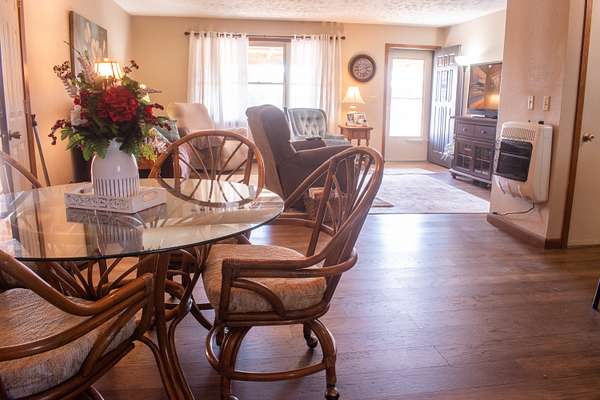The home features approximately 1,300 sq ft of living space with potential to expand to 1,800 sq ft, letting you create the home of your dreams. A 520 sq ft attached garage, storm shelter, and recent HVAC heat pump add comfort and peace of mind. For added efficiency, you'll find both a 3-burner propane heater and a modern heat pump system. Recent upgrades include a new roof (2025), engineered hardwood flooring (2025), and a covered front porch for relaxing evenings.