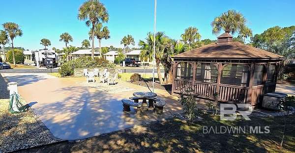Luxury Class A (15 years or newer & 32' or greater in length) and SUPER C (10 yrs or newer & 32' or greater in length) Motor Coach Resort rated #1 in the South and in the Top 5 RV Resorts in the United States. Nestled on the resort's coveted South (back) terrace, this spacious site offers comfort and privacy. Surrounded by lush landscaping, this oversized lot features a 10' x 14' screened gazebo for outdoor enjoyment. The gazebo is raised and features interior plank flooring and Vinyl Tech windows. Inside the gazebo, relax with friends on the wicker cushioned conversation set. There is a ceiling fan and drapes that can be drawn for extra shade or privacy. The extended patio area features a cement table and benches for outdoor dining. There is an outdoor deck box for your storage needs. Other amenities include decorative patio pavers, a stacked stone privacy wall and lush irrigated landscaping. Low COA dues and property tax. Buyer to verify all information. Buyer to verify all information during due diligence.