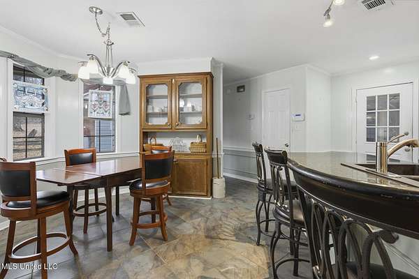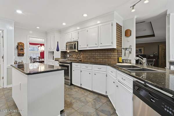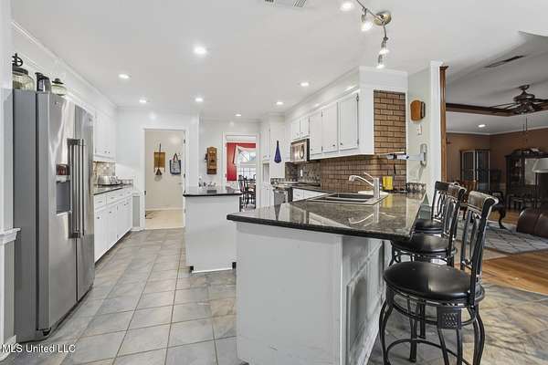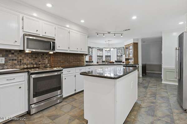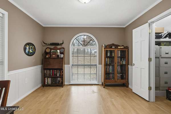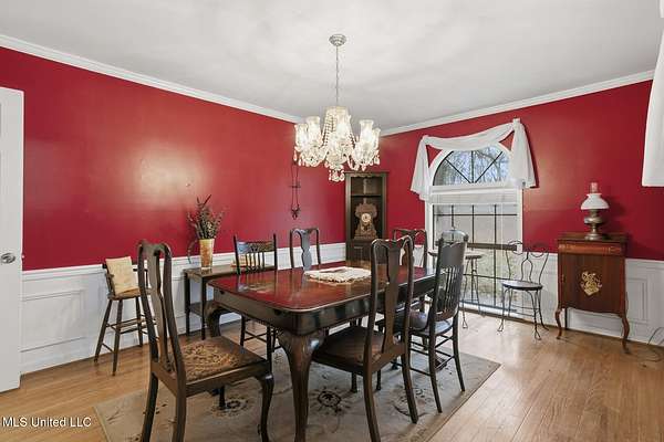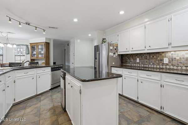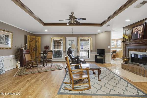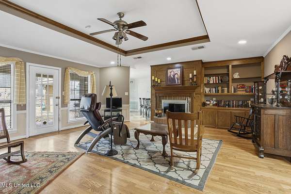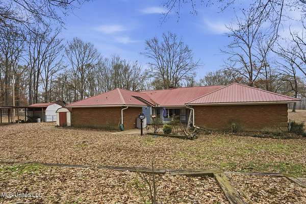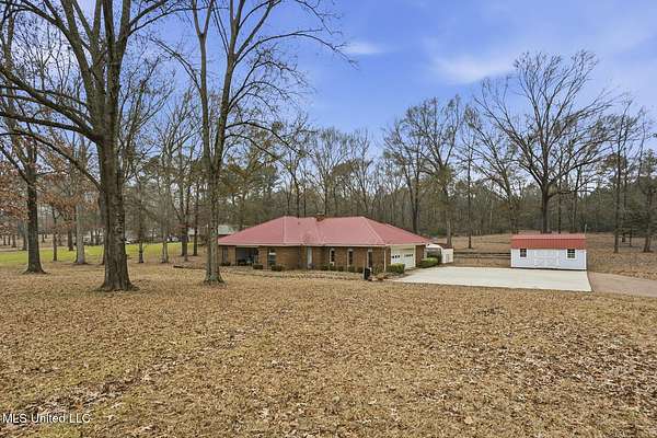 Spacious 5 bed, 3 full bath ranch-style home offering versatile living, thoughtful design, and a peaceful setting. Inside, multiple living areas provide exceptional flexibility, including a large formal living room highlighted by hardwood flooring, tray ceiling with wood accents, ceiling fans, and a central fireplace with custom built-ins that is ideal for entertaining or everyday comfort. A separate formal dining room adds additional space for gatherings and special occasions. The oversized kitchen serves as the heart of the home, featuring abundant white cabinetry, granite countertops, stainless steel appliances, recessed lighting, tile flooring, and a large center island with seating. An adjacent dining area with built-in cabinetry offers both functionality and charm. The primary suite provides a private retreat with a spa-inspired bath showcasing a freestanding soaking tub, separate walk-in tiled shower, dual vanities, and a spacious custom walk-in closet with built-ins and drawers. Additional bathrooms include tub/shower combinations, tile flooring, and ample storage. A generous bonus or flex room with decorative ceiling beams and rich wood flooring offers endless possibilities for a home office, media room, or additional living space. The single-level layout supports easy living, while the dedicated laundry room with extensive cabinetry and workspace enhances day-to-day convenience. Outside, the home sits on a beautifully wooded lot with mature trees, offering privacy and room to enjoy the outdoors. Two detached storage buildings provide added versatility for hobbies, equipment, or extra storage. Move-in ready with space to personalize, this property combines comfort, functionality, and flexibility in a tranquil setting. Schedule your private showing today and experience everything this home has to offer.