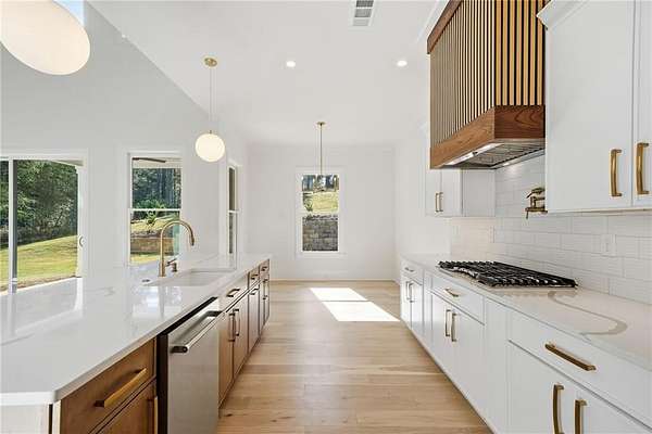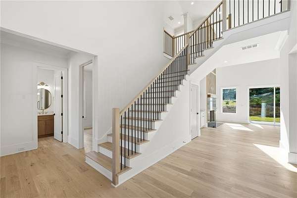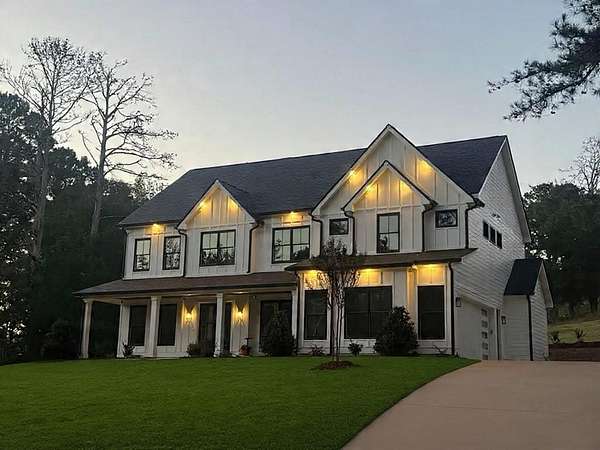 New Construction - Modern farmhouse plan features 6 bedrooms and 4.5 baths, nestled on a spacious 2.019-acre lot. The home offers a perfect blend of luxury and nature, with large floor-to-ceiling windows that flood the interior with natural light. The open-concept floor plan creates a seamless flow between the living, dining, and kitchen areas. The gourmet kitchen is equipped with top-of-the-line stainless steel appliances, custom cabinetry, and a large island, perfect for entertaining. Each bedroom offers ample space, and the primary suite boasts a spa-like en suite bathroom with a soaking tub, a glass-enclosed shower, and dual vanities. The expansive outdoor space provides endless possibilities for a future pool, garden, or outdoor entertaining area, all while maintaining privacy and serenity. The home also includes high-end finishes and energy-efficient systems.