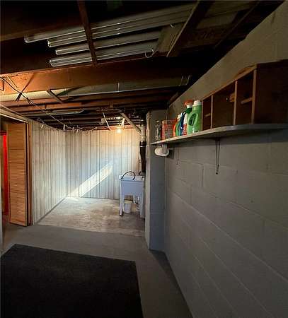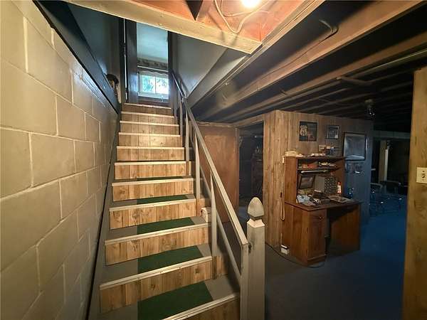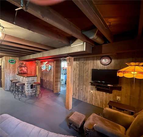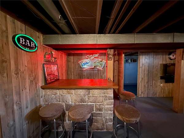 The lower level features a semi-finished space with painted floors and walls, complete with a built-in bar--ideal for entertaining or additional living space. Outside, you'll find a two-car open-air carport and a storage shed.