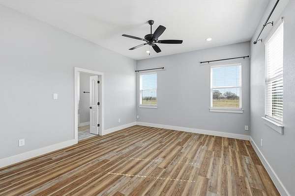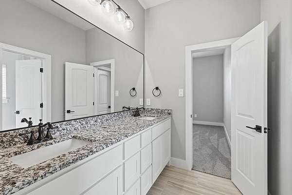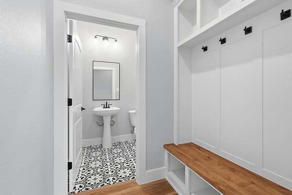 The primary suite is a true retreat with elevated touches, including luxury vinyl plank flooring in the primary bedroom & closet & a spa-inspired bath with upgraded finishes & a beautifully tiled walk in shower. Secondary split bedrooms are spacious with walk in closets. The home’s thoughtful details continue throughout—from the mudroom style drop zone to the clean, modern hardware & lighting.