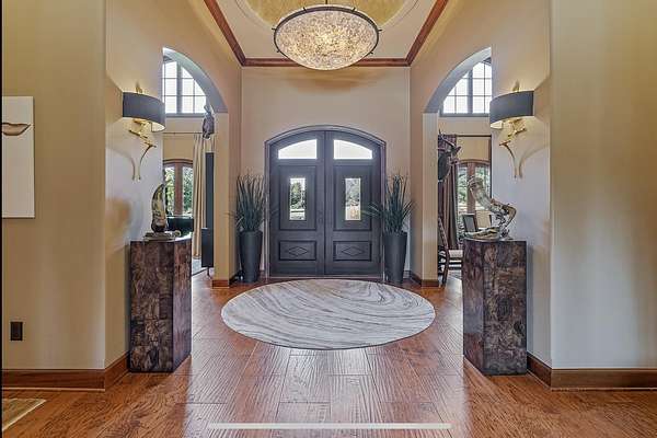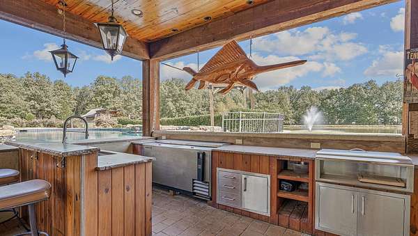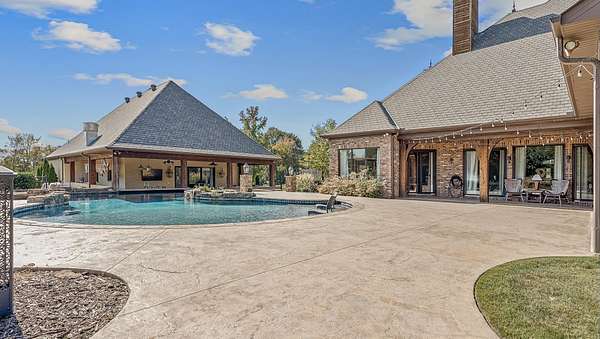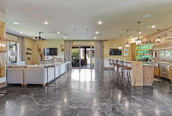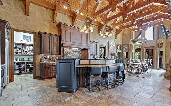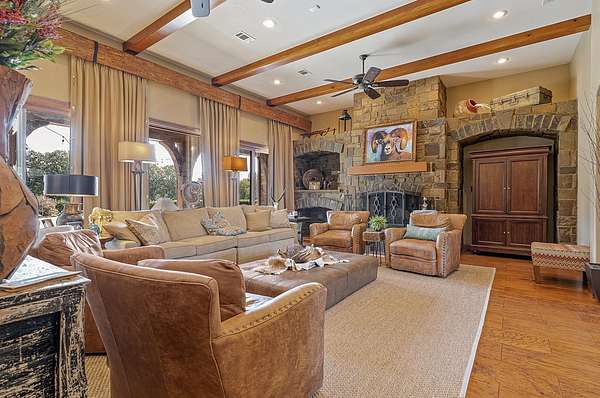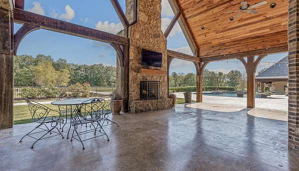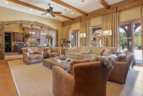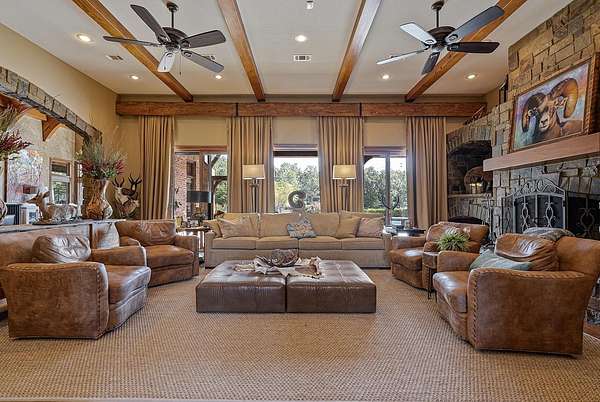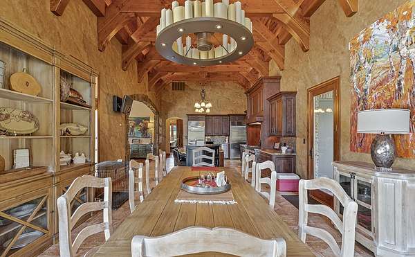 No Banks Required: Seller Will Finance For 30 Years at 4% Interest Rate. Fully Amoritized With 20% Down or Acceptable Trade In. Discover a rare 15-acre private estate featuring nearly 10,000 SF across a Main House, Guest House, and Pool House by Nelson Design Group. Includes 6 beds, 6 full & 3 half baths, 18-ft vaulted ceilings, timeless design, & expansive master suite w/ luxury bath & dual closets. Each guest suite has a private bath & walk-in. Enjoy 2,200+ SF of covered outdoor space, media room w/ projector & Dolby sound, 3.5 kitchens, and a stocked 30-ft-deep pond. Guest house offers 2 beds, kitchen, bath, and living room. The Pool House includes a full bar, lounge, catering room, sauna, and bath--ideal for events. A 4,200 SF barn/event center adds to the entertainment value. Front acreage has development potential. A unique lifestyle & investment opportunity!