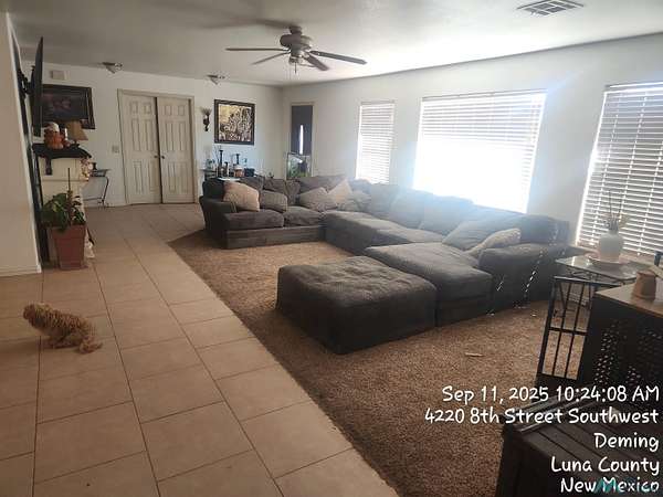 Est $1,599/moHIGH DESERT PROPERTY. Enjoy country living within minutes south of Deming in thie three bedroom three bathroom ranch stlye house built in 1984, remodled in 2009 at approx 2400 sq ft living space settled on 2.85 acres. Split floor plan. Large rooms. Open floor plan.Tile flooring. Lots of room. Beautiful views of surrounding mountains.