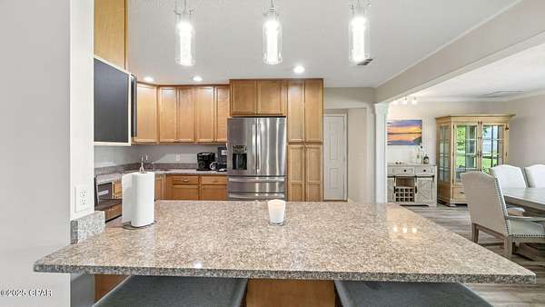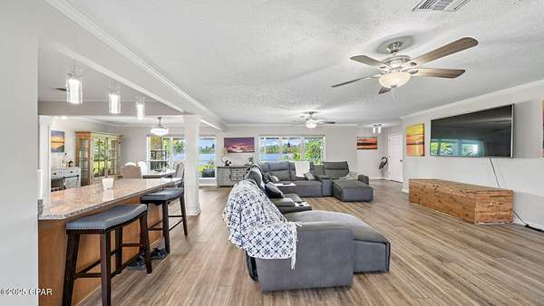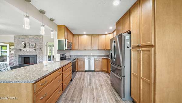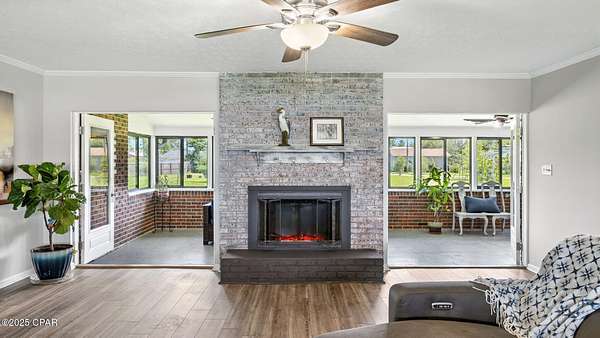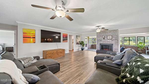 Exceptional Waterfront Retreat on Deerpoint Lake - 1.65 AcresEnjoy the perfect mix of privacy, modern upgrades, and water access in this beautifully renovated 4-bedroom, 2.5-bath ranch-style home with over 2,400 sq. ft. of living space and approximately 600 feet of shoreline wrapping around three sides of the property. A brand-new dock on the canal, private boat ramp, and expansive lot make it ideal for boating, fishing, and soaking in serene water views from nearly every angle, with all scenic views of the lake.Inside, you'll find fresh paint, new flooring, stylish light/ceiling fans, and custom wireless blinds throughout. The kitchen features new appliances, cabinetry, countertops, and fixtures, while the living area offers crown molding and a resurfaced fireplace. Bathrooms have resurfaced cabinets and updated fixtures, and the Florida room includes new flooring and paint.Upgrades include a new well, new insulation, a new roof with hurricane clips and a transferable 50-year warranty, a new A/C system with ductwork, new windows and doors, a new water heater with filtration, and a 20' x 26' multipurpose building perfect for storage, hobbies, or a workshop complete with a full garage door.This move-in-ready waterfront property offers unmatched features, comfort, and style perfect for year-round living or a weekend escape.