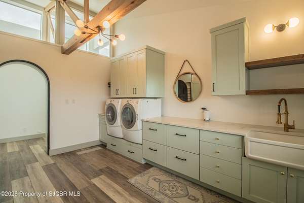- Dishwasher, Double Oven, Garbage Disposer, Microwave, Range, Refrigerator, Washer