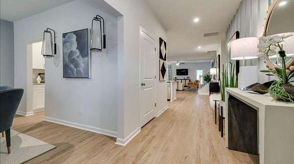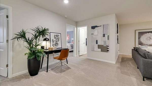 The Rembert plan offers an exceptional blend of space, style, and functionality, making it the perfect home for modern living. As you enter, a flexible room near the front provides endless possibilities, whether for formal dining, a home office, or a cozy sitting area. The heart of the home is the expansive kitchen, a true chef's paradise, featuring a large island, sleek stainless-steel appliances, a stylish tile backsplash, and ample storage space, perfect for both meal prep and entertaining. The open-concept layout seamlessly flows into the spacious family room, creating a perfect space for relaxing or hosting gatherings. On the main level, the primary suite is a true retreat, offering privacy, a generous bathroom with high-end finishes, and a large walk-in closet. Upstairs, you'll find three additional well-sized bedrooms, two full bathrooms, and plenty of storage, plus a versatile loft area that could easily be transformed into a media room, playroom, or home gym. With its smart design, spacious layout, and elegant features, the Rembert plan offers everything you could want in a home comfort, convenience, and style. This home is perfect for anyone looking for both a peaceful retreat and a place to entertain, making it a standout choice for your next move.