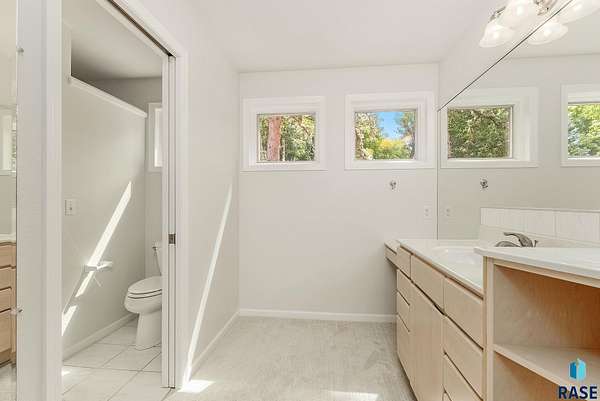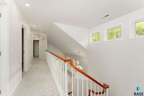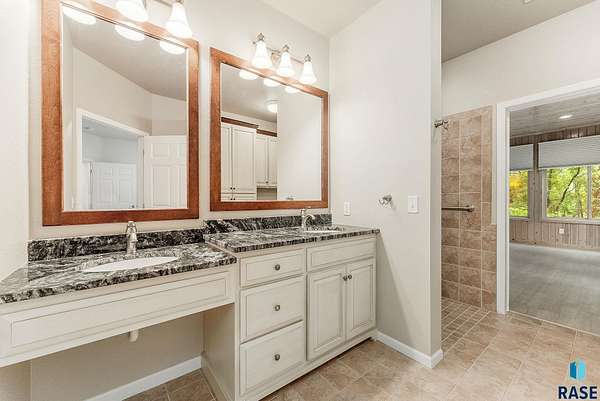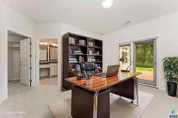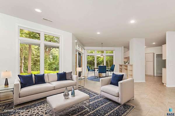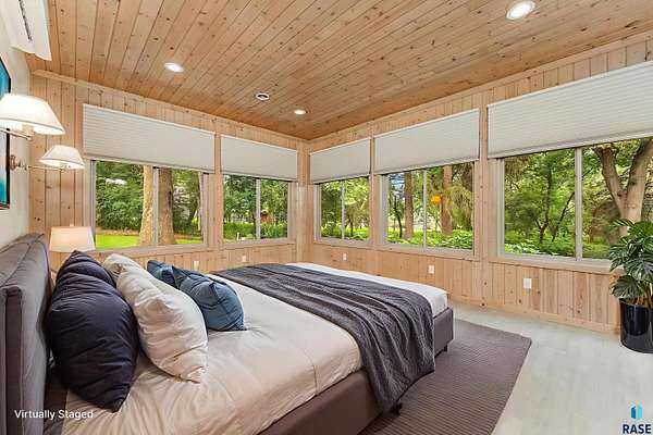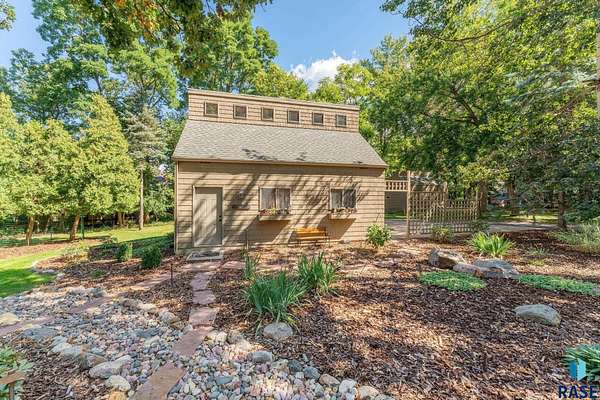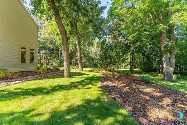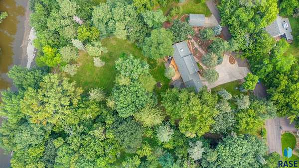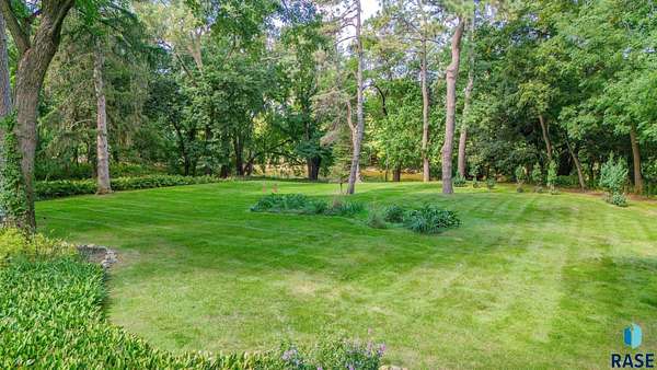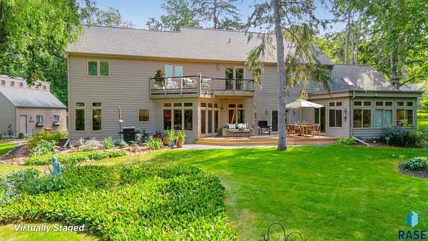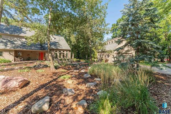 Here's a rare opportunity to own 1.97 wooded acres on a private road in the middle of Sioux Falls-your very own nature sanctuary. This custom-built, slab-on-grade two-story home has 3,965 square feet, four bedrooms, four baths, and two two-stall garages. Designed for reflection, retreat, and connection to the land, this home is surrounded by mature trees, artful landscaping, and a forested backdrop that often bustles with wildlife. Enjoy meals in the casual dining area with magnificent views of the river and sprawling backyard. The deck is perfect for grilling, entertaining, and soaking in the sounds of nature. Inside, you'll appreciate the convenience of main floor living-zero-entry and ADA-accessible-with expandable areas for guests and family. The living room features 15-foot ceilings, a gas fireplace, and abundant natural light. Light cherry wood cabinets adorn the kitchen, which flows seamlessly into the family room. Heated floors grace the kitchen, eat-in area, family room, and laundry/mud room. This unique home showcases two primary suites: The main floor suite feels like a retreat, with walls of windows showcasing the forested view, deck access, an attached home office, walk-in shower, and spacious closet. The second-floor suite includes an attached den with upper deck access, a large walk-in closet, and a full bath with extra-large tub, tiled shower, and double vanity. Upstairs also includes two additional bedrooms, a full bath, and a large flex room above the garage-ideal for a playroom, home office, or studio (with ventilation fan). The attached heated garage features epoxy floors, while the detached garage offers additional parking, storage, heating, cooling, and power. Beautiful, artful landscaping surrounds this park-like home. Conveniently located with easy access to trails, interstate, and shopping. Come explore this thoughtfully designed, picturesque property. Optional Adjacent Parcel - 4301 S Pine Cone Place: For buyers seeking even more privacy or future flexibility, an adjacent .37-acre lot is available. Whether used for a guest house, mother-in-law suite, studio, or simply preserved as open space, this parcel quietly expands the sanctuary's potential-bringing the total to 2.34 acres of rare, intentional living. Some photos are virtually altered.